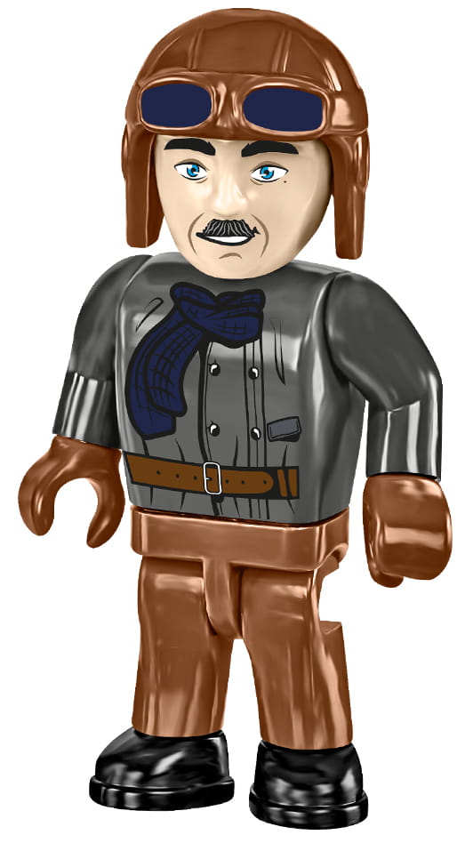 - Figurka pilota – lotnik w mundurze z epoki, idealny do odtworzenia historycznych scen.