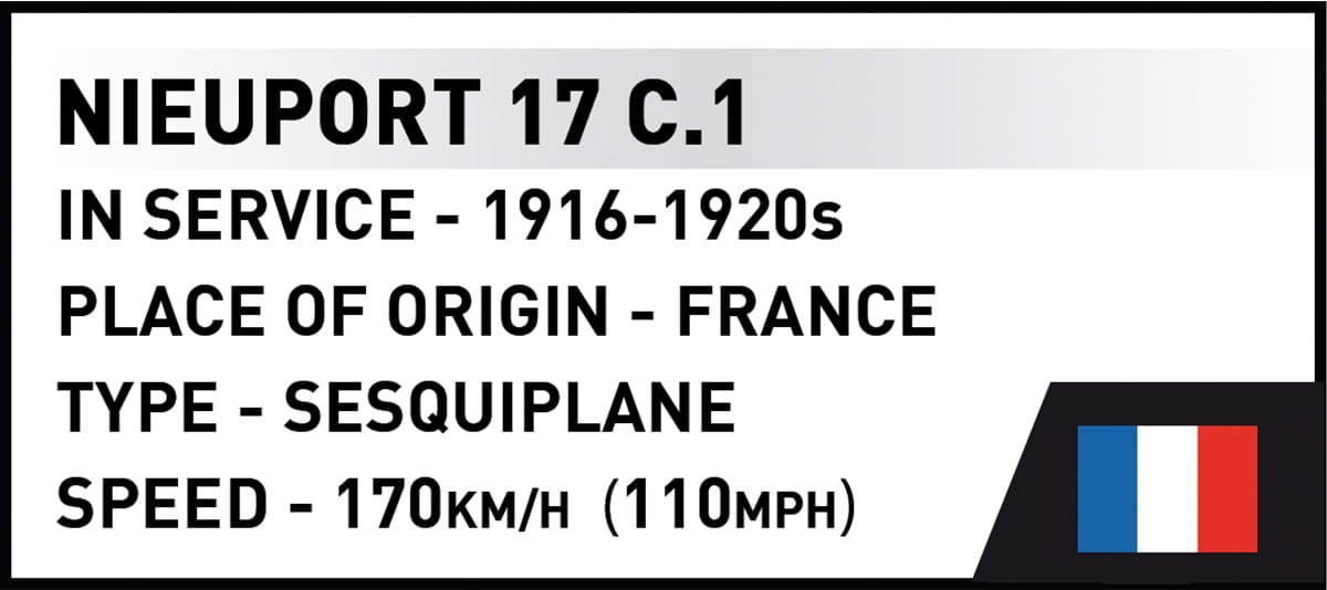 Nieuport 17 C.1, wyposażony w silnik Le Rhône o mocy 110 KM, stał się jednym z najważniejszych myśliwców I wojny światowej. Był większy, szybszy i zwrotniejszy od swojego poprzednika – modelu 11. Na tych maszynach latali najwybitniejsi alianccy piloci, tacy jak Albert Ball czy William Bishop, zdobywając dziesiątki zwycięstw powietrznych. Konstrukcja okazała się tak udana, że Niemcy próbowali ją skopiować, tworząc własny odpowiednik – Siemens-Schuckert D.I.