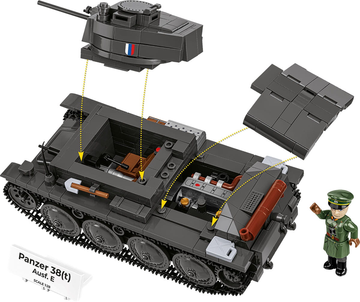- 2 w 1 – wybierz, którą wersję chcesz zbudować: czechosłowacki LT vz. 38 lub niemiecki Panzer 38(t). Możesz też przebudować model w dowolnej chwili!