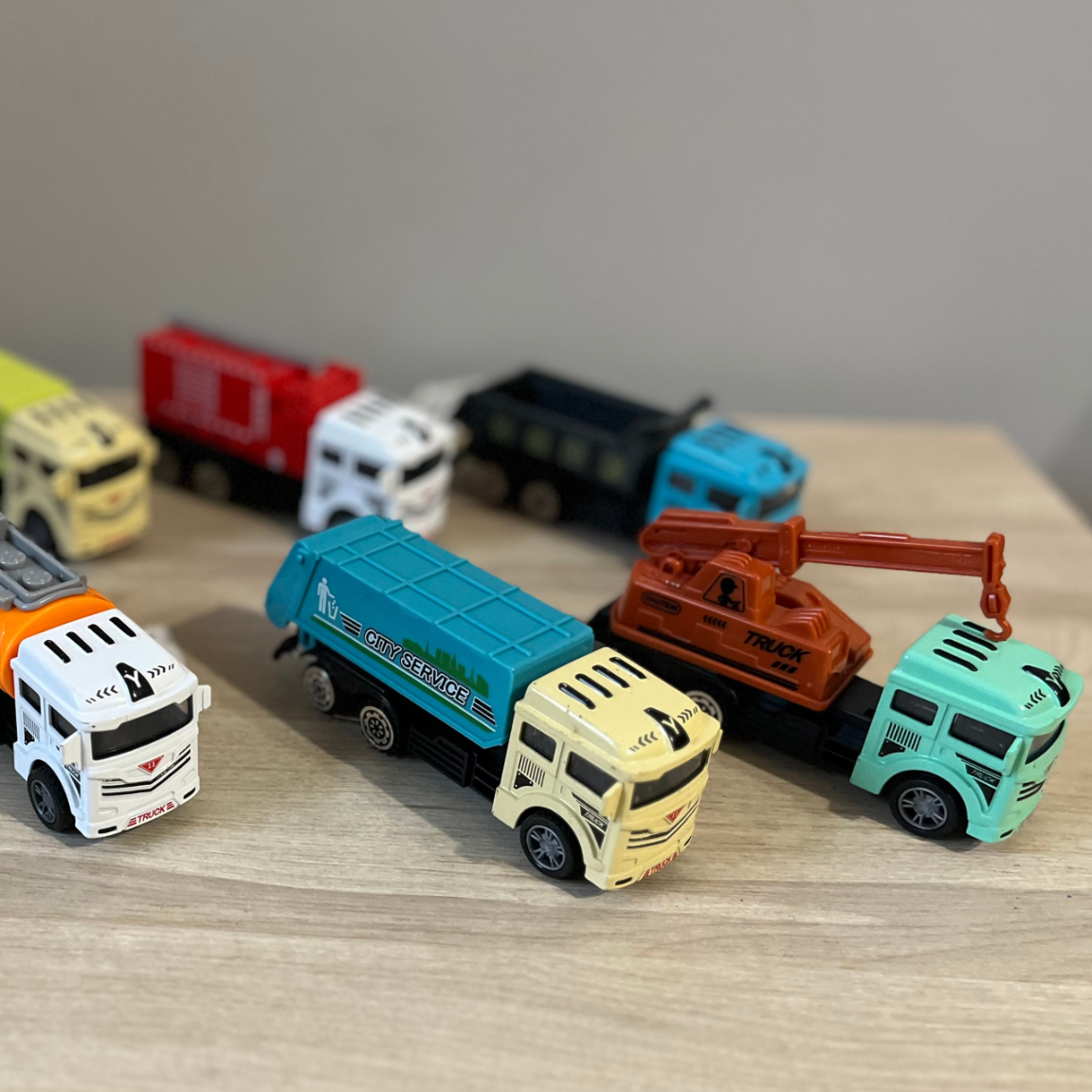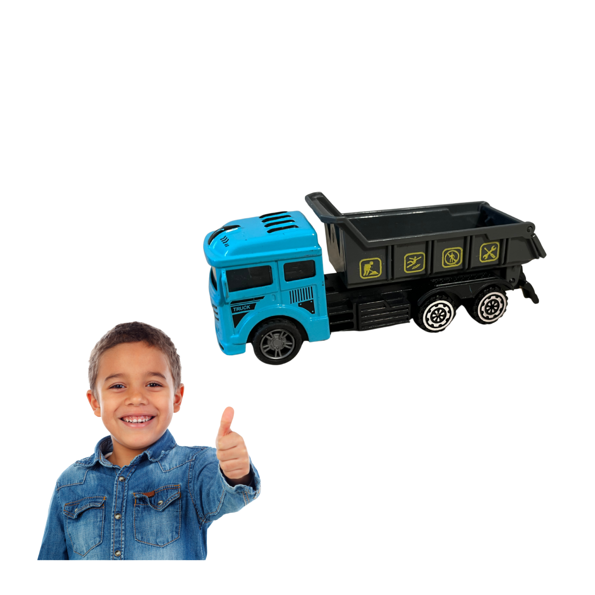 Solidne metalowe auto ciężarowe (die-cast) z realistycznymi detalami i napędem frykcyjnym – wystarczy pchnąć do przodu, a pojazd pojedzie sam. Idealny do zabawy na dywanie, macie czy biurku. Świetny wybór dla małych fanów budowy i maszyn!
