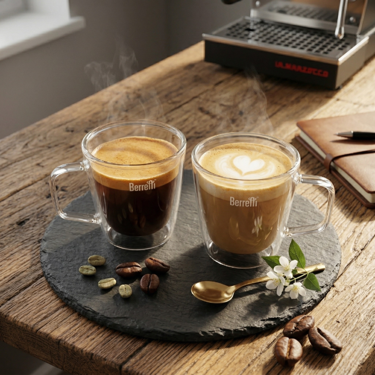 Berretti Tazza to szklanki termiczne do latte 250 ml zaprojektowane z myślą o codziennym użytkowaniu. Smukła forma i idealna przejrzystość szkła sprawiają, że napój wygląda estetycznie, a podwójne ścianki poprawiają komfort serwowania.