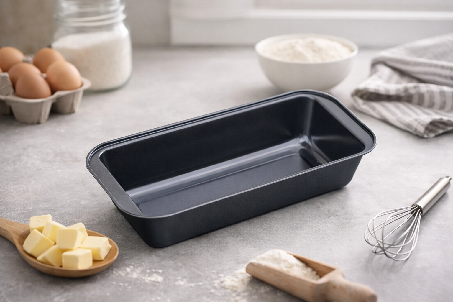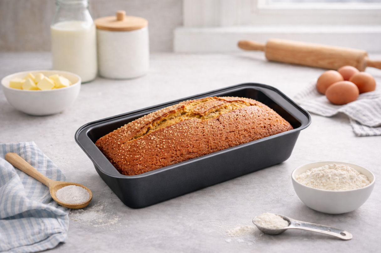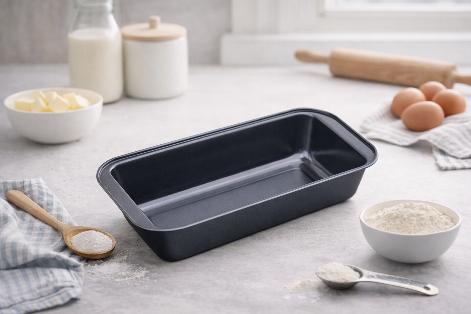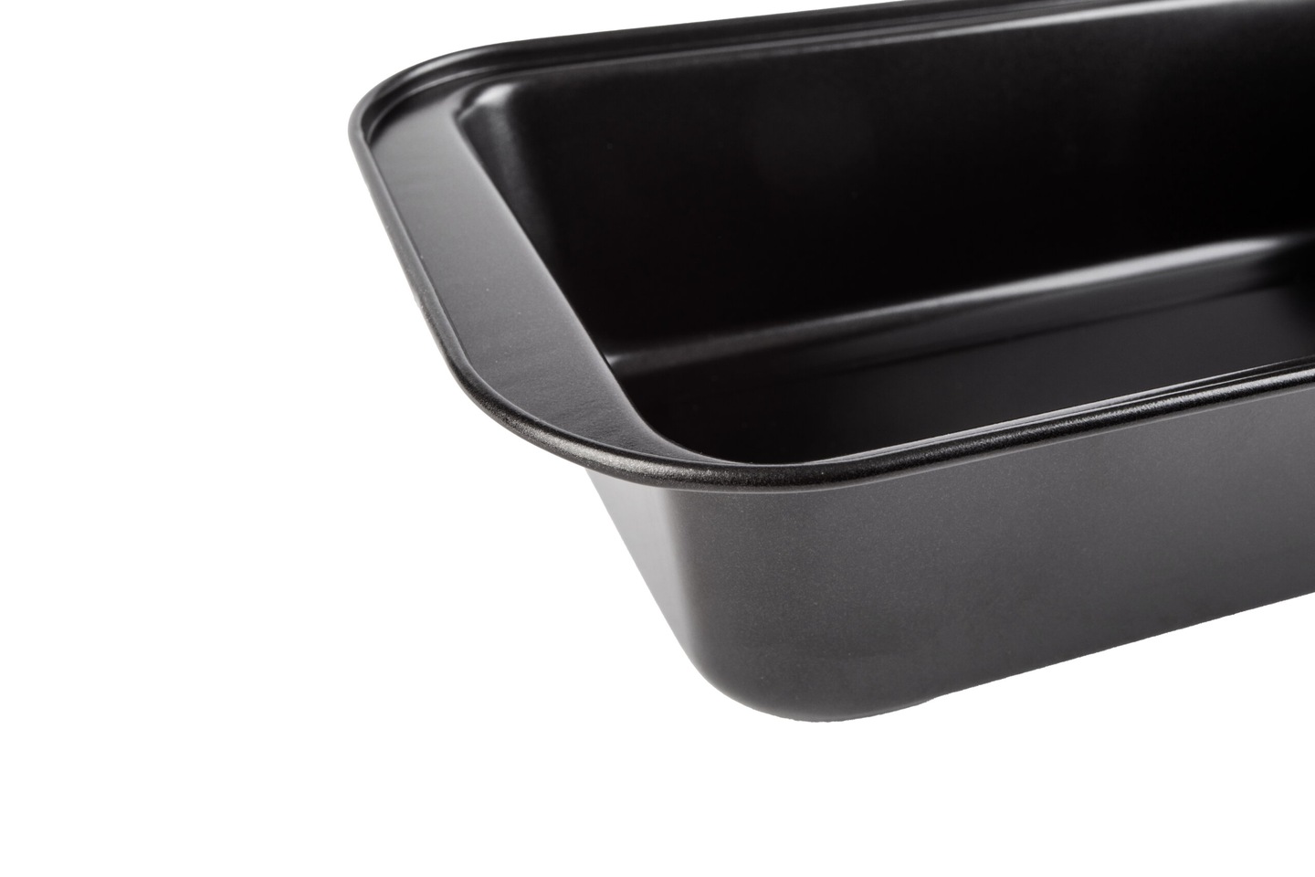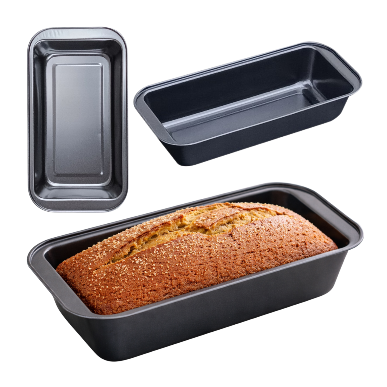 Prostokątny kształt ułatwia formowanie klasycznych bochenków i keksów, a wysokość ścianek pomaga utrzymać estetyczną bryłę wypieku.