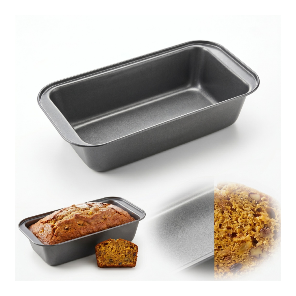 Prostokątny kształt i optymalna wysokość ścianek ułatwiają uzyskanie zgrabnego bochenka lub klasycznego keksa z równą, apetyczną skórką.