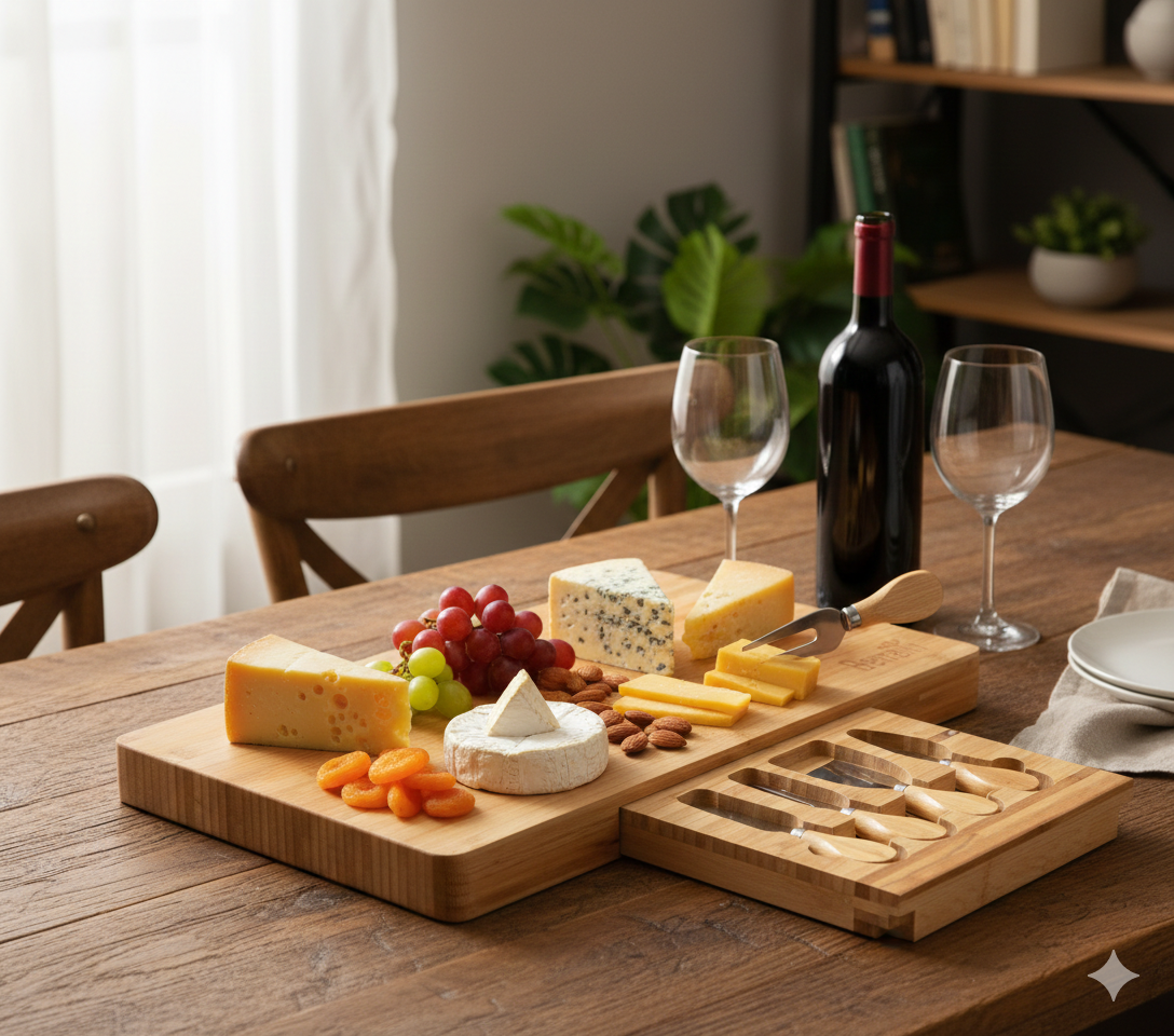 To praktyczna deska do serów z nożami, która pomaga szybko przygotować deskę przekąsek na wspólny wieczór, urodziny dziecka lub spotkanie z bliskimi. Dla rodziców to także wygoda: mniej szukania akcesoriów, więcej czasu na wspólne chwile.