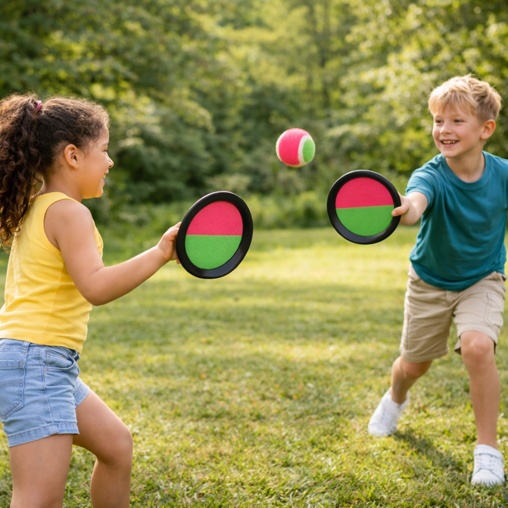 Catch Ball Gra Zręcznościowa dla Dzieci Rzucaj i Łap Paletki na Rzepy to prosta, dynamiczna i angażująca zabawa, która zachęca dzieci do ruchu oraz wspólnego spędzania czasu. Ten zestaw typu catch ball świetnie sprawdza się w domu, ogrodzie, parku, na plaży i podczas wyjazdów.