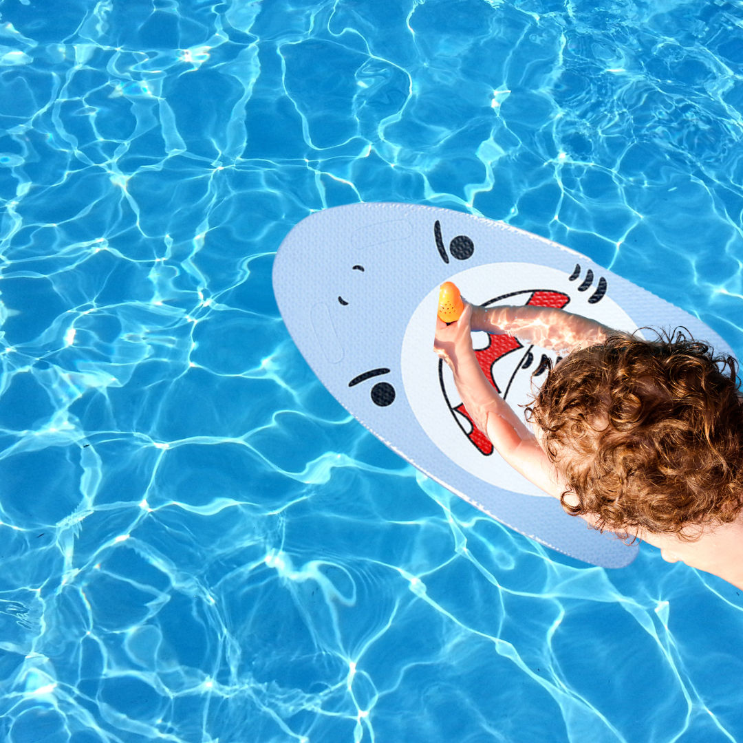 Przedstawiamy uroczą deskę do pływania z motywem rekina, która nie tylko zapewni Twojemu dziecku zabawę, ale również ułatwi naukę pływania w sposób bezpieczny i przyjemny!