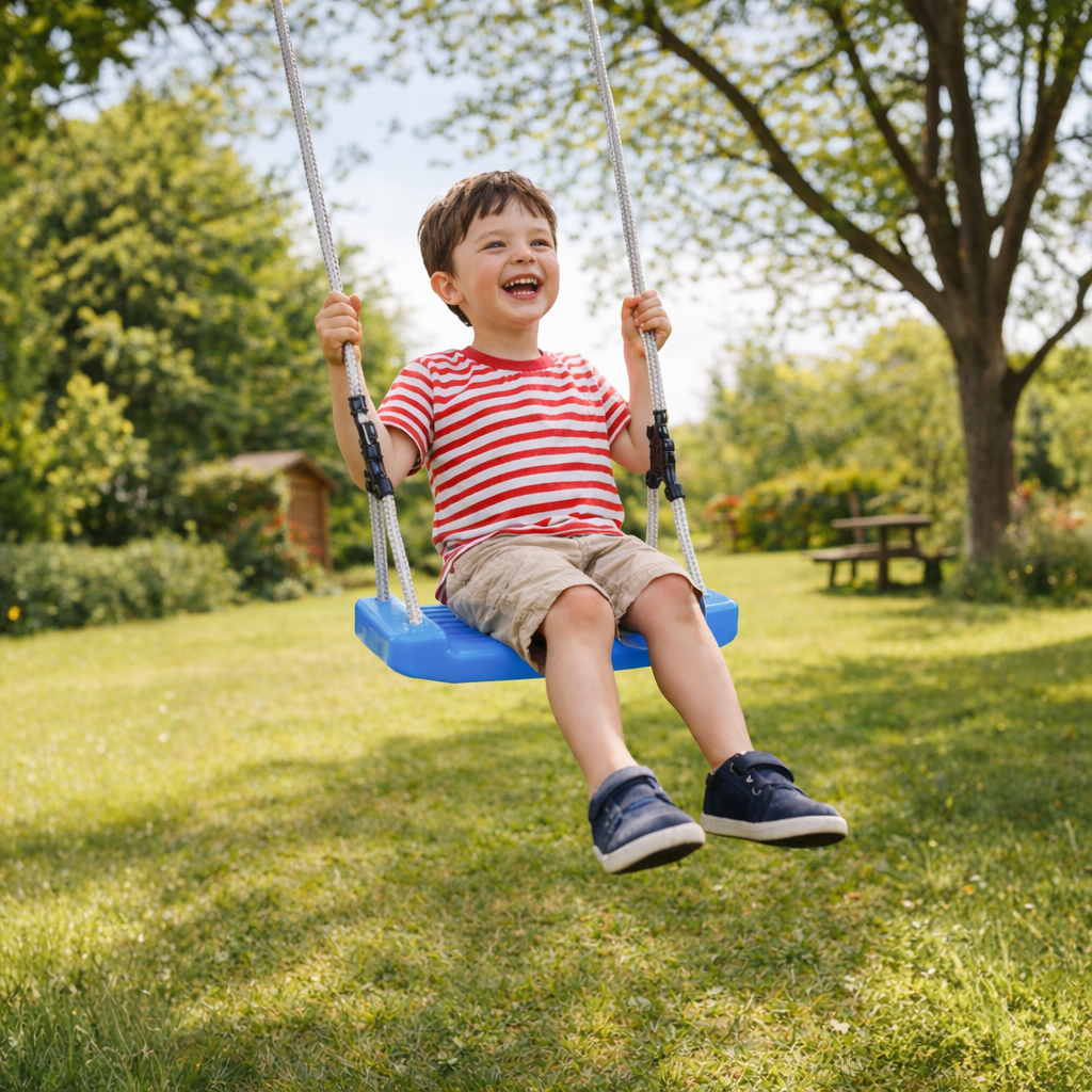 Dzięki klasycznej formie i uniwersalnemu zastosowaniu model DESKA Niebieska sprawdzi się jako codzienna atrakcja w przydomowej przestrzeni, ale również jako praktyczny prezent na Wielkanoc, urodziny lub inną okazję. To świetna propozycja dla osób, które szukają trwałej huśtawki deski dla przedszkolaka.