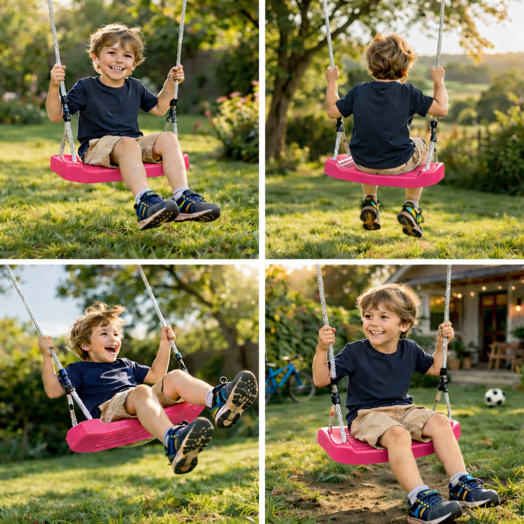 Huśtawka Ogrodowa dla Dzieci DESKA Różowa to klasyczna, lekka i praktyczna huśtawka ogrodowa dla dzieci, która daje maluchowi mnóstwo radości z codziennej zabawy. Różowy wariant świetnie prezentuje się w ogrodzie, na tarasie, przydomowym placu zabaw, a także w domowej strefie aktywności.