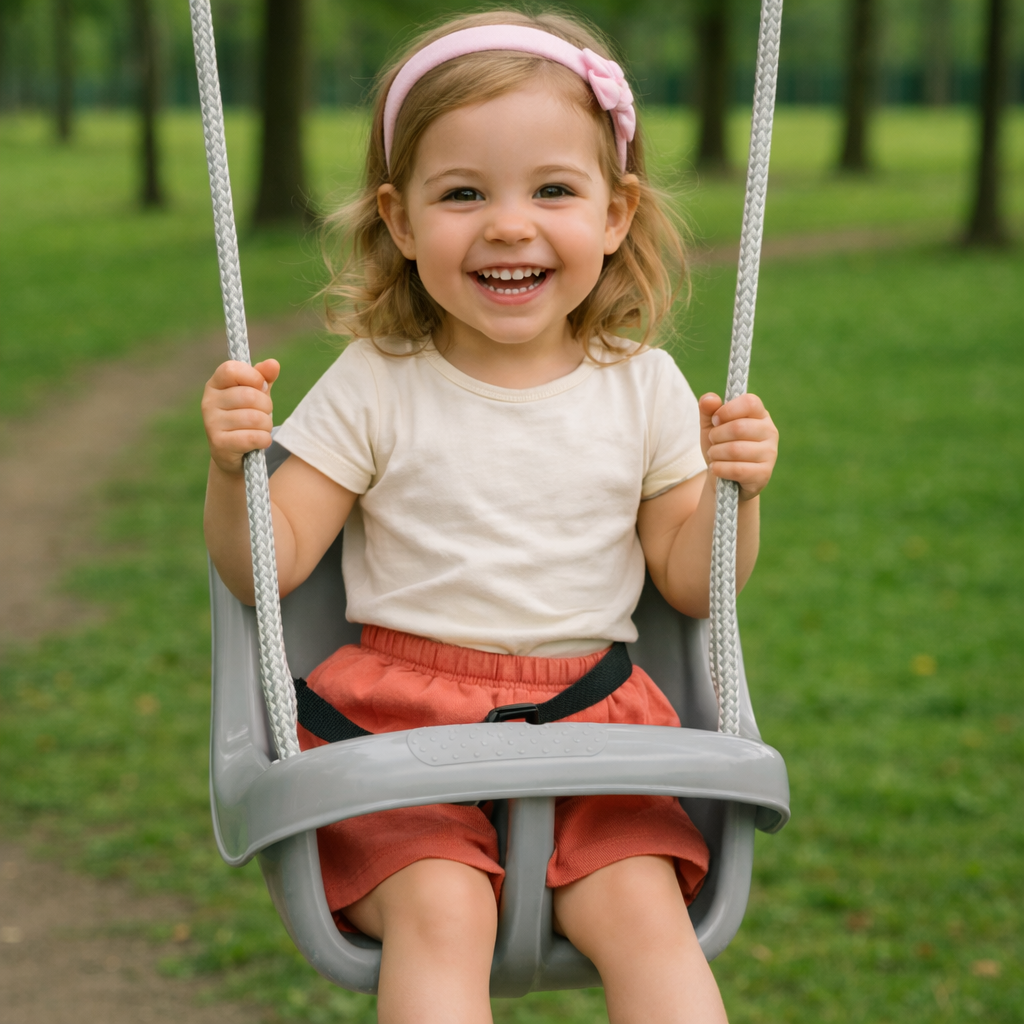 Bezpieczeństwo najmłodszych jest priorytetem, dlatego nasza huśtawka kubełkowa charakteryzuje się głębokim profilem siedziska oraz wysokim oparciem. Taka konstrukcja skutecznie stabilizuje sylwetkę malucha, zapobiegając przypadkowemu ześlizgnięciu się czy nadmiernemu wychyleniu podczas ruchu. Huśtawka jest idealnym rozwiązaniem dla rodziców szukających produktu, który wspiera rozwój motoryczny i koordynację ruchową dziecka w bezpiecznych warunkach. Solidne ścianki boczne dają dziecku poczucie pewności, pozwalając mu w pełni cieszyć się swobodą, jaką daje delikatne bujanie na wietrze.