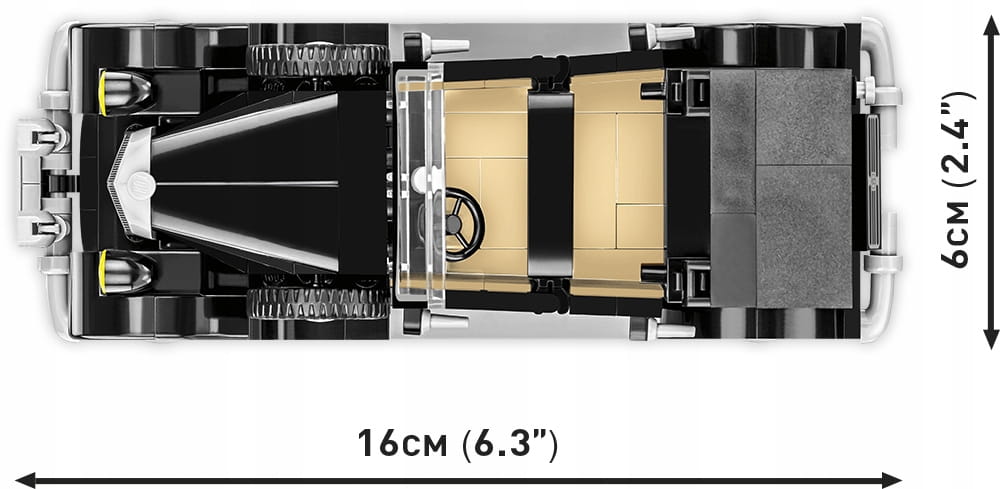 Rewelacyjnie odwzorowane w modelarskiej skali 1:35 auto składa się z 244 elementów i uzupełnia kolekcję zabytkowych samochodów COBI. Klocki oraz figurki przedstawiające generała Charlesa De Gaulle i kierowcy pokryte są wysokiej jakości nadrukami.