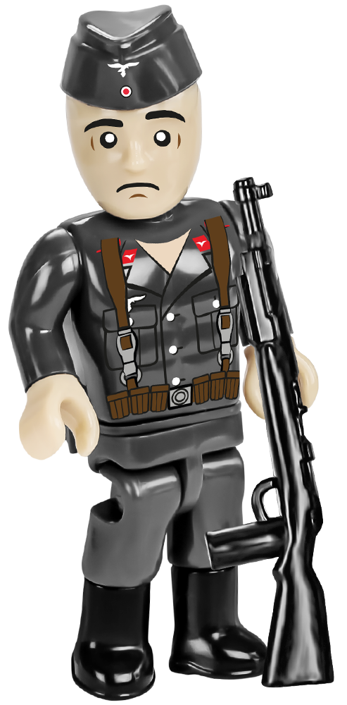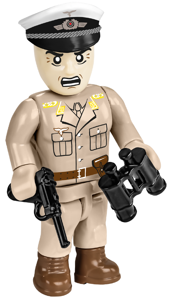 ✅ ,W zestawie znajdują się trzy figurki. Żołnierz Luftwaffe, żołnierz piechoty Wehrmachtu oraz dodatkowa figurka oficera Afrika Korps. Figurki wyposażone są w akcesoria takie jak klockowe zasobniki, broń i nakrycia głowy..
