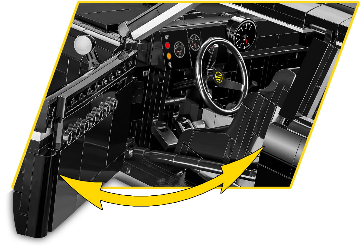 Legendarna Czarna Wdowa w zupełnie nowej serii motoryzacyjnej od COBI! Zaawansowany technicznie klockowy zestaw w dużej modelarskiej skali 1:12 ma aż 38 cm długości. Samochód Opel Rekord C w wersji sportowej wydany na oryginalnej licencji marki Opel. Zestaw został zaprojektowany z 2300 elementów. Model wyróżnia się zastosowaniem dużej ilości, wyłącznie wysokiej jakości nadruków! Całkowicie zrezygnowaliśmy z naklejek. Specjalnie na potrzeby tak dużych zestawów zaprojektowano nowe elementy, zapewniające dodatkowe funkcjonalności. Ruchoma kierownica, którą możemy skręcać koła, zawiasy do otwieranych drzwi, elementy karoserii i wykończenia. Pod uchylną maską znajduje się odwzorowany z klocków silnik. Liczne detale takie jak klamki, światła, zegary tworzą spójną całość z doskonale odwzorowaną charakterystyczną bryłą tego pojazdu. Na karoserii nadrukowany jest numer startowy 201.