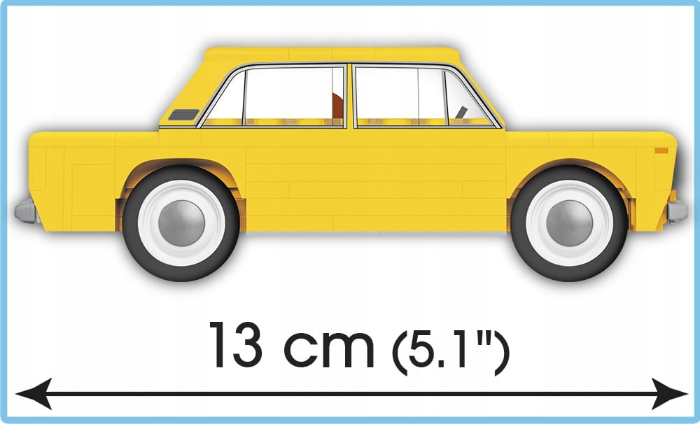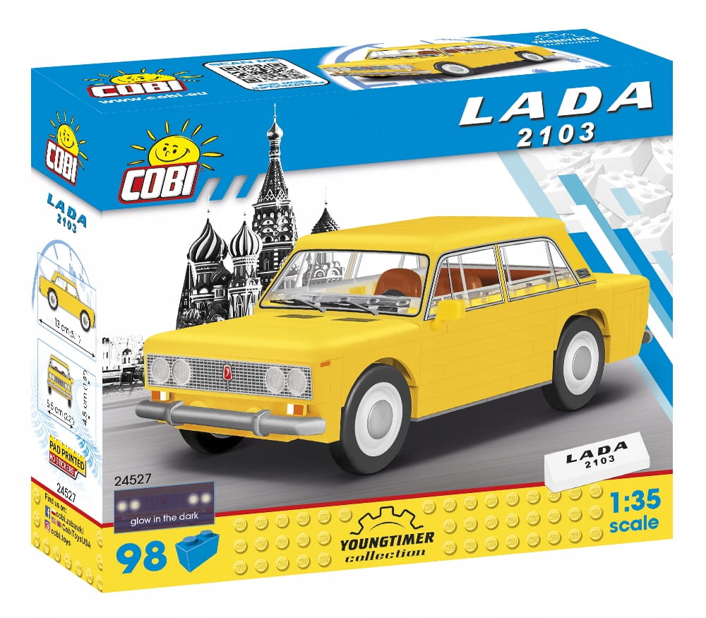 Model w skali 1:35 złożony w 100% z klocków COBI bardzo wiernie oddaje charakterystyczne kształty oryginalnego samochodu Łada 2103. Dzięki 100 elementom możliwe są drobne modyfikacje i przeróbki pojazdu. W modelu tym zrezygnowaliśmy z naklejek. Zostały one zastąpione trwałymi nadrukami, które nie ścierają się nawet w trakcie intensywnej zabawy. Obracające się koła wyposażone w opony idealnie nadają się do poruszania modelem w trakcie zabawy.