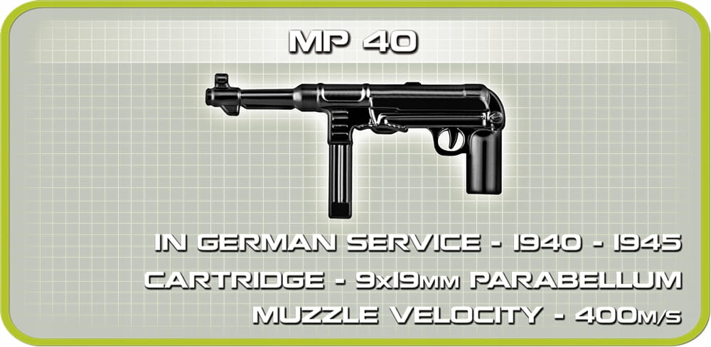 Do zestawu dołączona jest figurka niemieckiego żołnierza w mundurze tropikalnym. Żołnierz ma na swoim wyposażeniu czapkę, gumowe zdejmowane gogle, pistolet maszynowy MP 40 oraz walizkę.