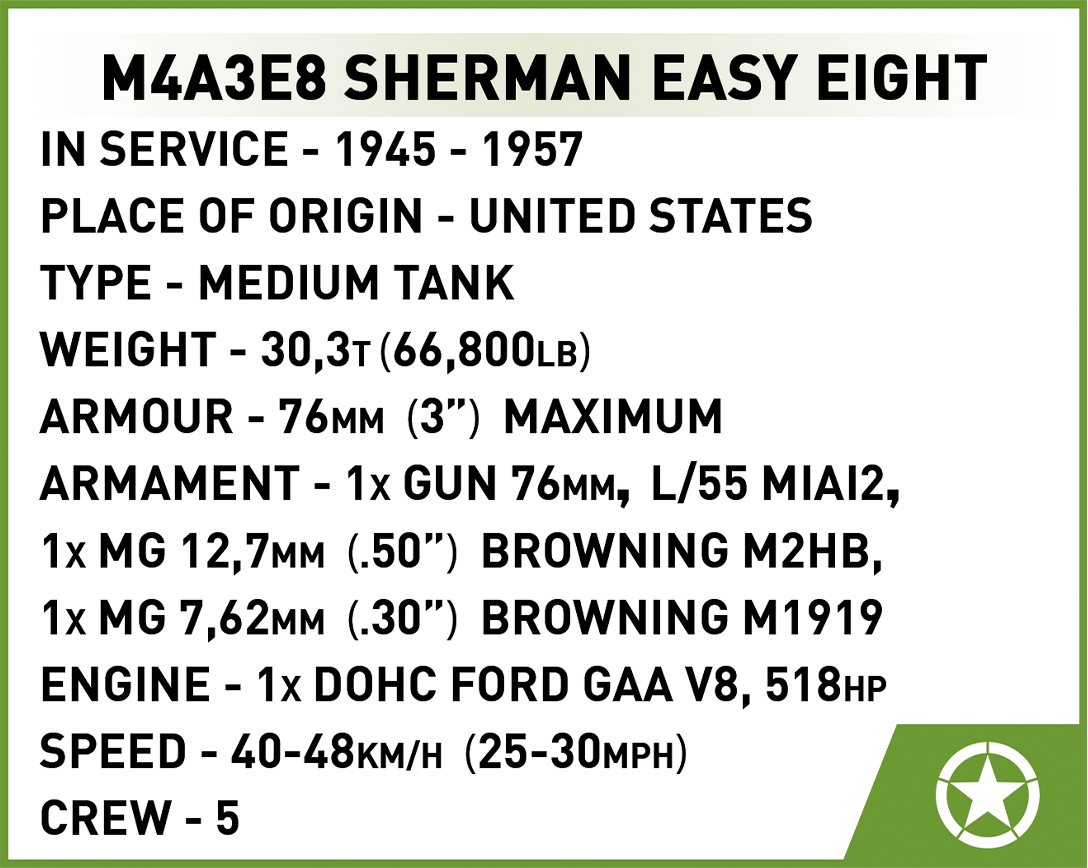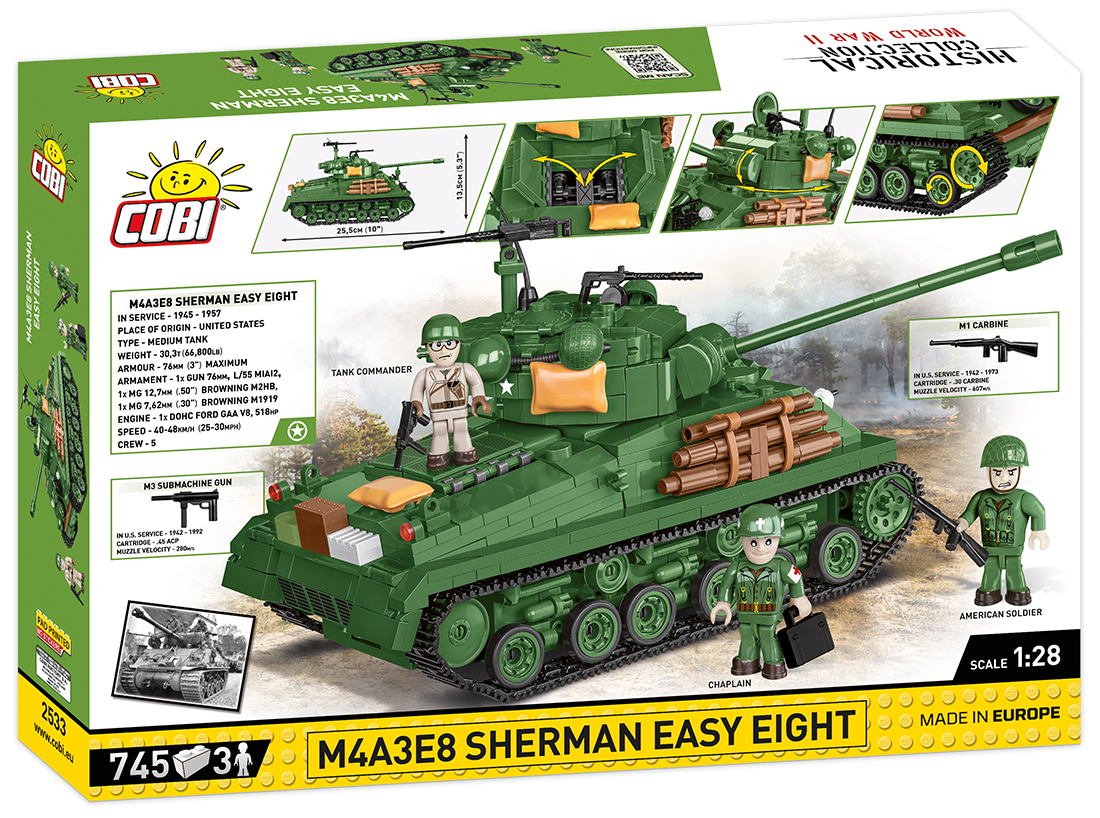 KLOCKI COBI 2533 Czołg M4A3E8 Sherman Easy Eight HC WW2 725 EL.