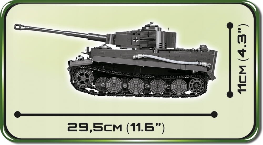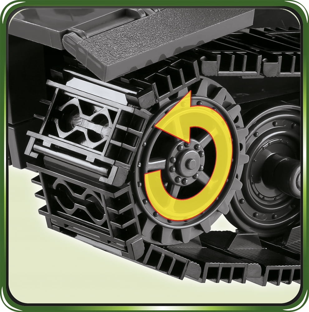 Model w całości stworzony z klocków konstrukcyjnych COBI posiada wiele ruchomych elementów takich jak: otwierane włazy, ruchomą lufę działa, czy obracające się koła i gąsienice. Klapy serwisowe można podnieść, by zobaczyć atrapę silnika zamontowanego wewnątrz pojazdu. Zaletą zestawu składającego się aż z 800 elementów jest bardzo solidna konstrukcja, która wiernie odzwierciedla oryginalne kształty swego historycznego pierwowzoru. Czołg został pokryty wysokiej jakości nadrukami, które nie ścierają się nawet w trakcie intensywnej zabawy. Ten realistyczny model znakomicie sprawdza się jako świetna zabawka dla młodych pasjonatów historii i broni pancernej, ale także może to być wyjątkowy element każdej kolekcji dorosłego fana militariów. W zestawie znajduje się figurka niemieckiego czołgisty z powiększonym torsem i akcesoriami: pistoletem osobistym P08 Parabellum i lornetką. Nowością są słuchawki nakładane na posiadającą nadruk furażerkę oraz specjalny klocek zawierający nazwę pojazdu. Ponadto w instrukcji znajduje się specjalna karta ze statystykami pojazdu, którą można użyć w Strategicznej Grze Bitewnej. Jej zasady są udostępnione bezpłatnie na stronie internetowej: www.cobigames.com
