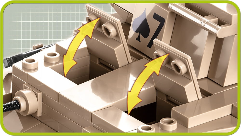 Model czołgu Panzerkampfwagen IV zbudujemy z aż 559 wysokiej jakości klocków konstrukcyjnych COBI. Wiernie odwzorowany pojazd z okresu II wojny światowej został pokryty nadrukami, które nie ścierają się w trakcie intensywnego użytkowania. W komplecie dostępne są również dwie figurki żołnierzy niemieckiego Afrikakorps. Dowódca czołgu wyposażony jest w pistolet P08 Parabellum oraz gumowe gogle. Kierowca w furażerce wyposażony jest w nowy typ lornetki. Do czołgu możemy przyczepić akcesoria dostępne w opakowaniu lub wyposażyć w nie figurki. Do dyspozycji mamy łom, młotek, przewód oraz skrzynię. Wiele ruchomych elementów takich jak wieża czołgu, lufa, obracające się koła i gąsienice oraz uchylne klapy serwisowe skrywające atrapy silnika podnoszą atrakcyjność modelu. Kolekcjonerzy i fani historii oraz broni pancernej z pewnością ozdobią tym modelem swoją ekspozycję. Całość uzupełnia klocek z nadrukowaną nazwą pojazdu.