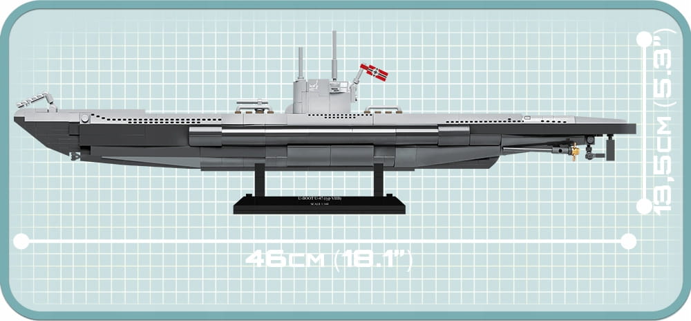 Model słynnego okrętu podwodnego został w całości zaprojektowany z polskich klocków konstrukcyjnych COBI w rewelacyjnej modelarskiej skali 1:144! Zestaw składa się z 422 elementów. Świetnie odwzorowany model U-47 mierzy aż 46 cm długości. Wszystkie detale i elementy graficzne to trwałe nadruki, które nie ścierają się nawet w trakcie intensywnego użytkowania.