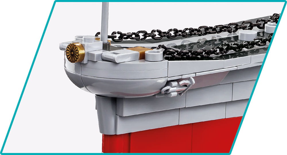 Pancernik Yamato to ogromny model z klocków konstrukcyjnych COBI. Podobnie jak pozostałe okręty wojenne został zaprojektowany w modelarskiej skali 1:300. Najnowsza edycja jeszcze wierniej oddaje nawet najdrobniejsze detale i szczegóły swego historycznego pierwowzoru. Po złożeniu 2665 elementów bryła pancernika ma aż 90 cm (30.4″) długości i 19,5 cm (7.7”) cm wysokości. Posiada wiele ruchomych elementów takich jak: działa pokładowe i baterie przeciwlotnicze, obrotowe wieże artyleryjskie, ster czy śruby napędowe. Do zestawu dołączona jest specjalna podstawka ekspozycyjna z tabliczką, na której wydrukowana jest nazwa okrętu. Pięknym dodatkiem jest wyjątkowy klocek imitujący Złotą Orchideę, czyli cesarski symbol, który ozdabiał dziób okrętu. Model jest idealny dla wszystkich miłośników historii, militariów, marynistyki i techniki wojskowej. Prezentuje się znakomicie, budząc podziw i zainteresowanie! Dzięki intuicyjnej instrukcji opartej na czytelnych ikonach budowa jest prosta i nie sprawia trudności. Szacowany czas budowy modelu to około 8 godzin, podcza, których budujemy historię!