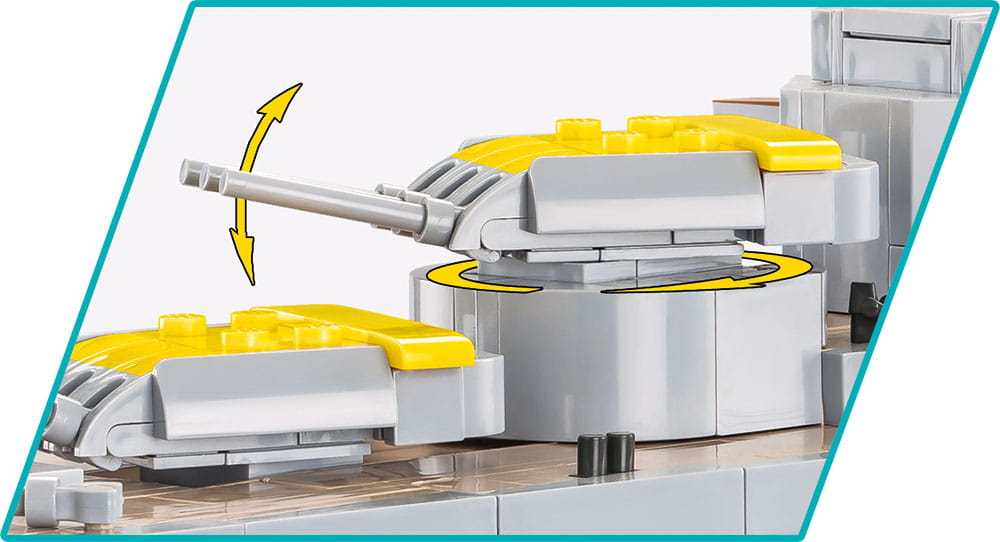 Kolekcjonerski model niemieckiego pancernika Gneisenau z okresu II wojny światowej został przygotowany przez firmę COBI w modelarskiej skali 1:300. Składa się z 2417 klocków konstrukcyjnych i ma aż 81 cm długości. Wiernie oddaje proporcje historycznego okrętu i zachowuje jego wszystkie istotne elementy, w tym uzbrojenie. Okręt został odwzorowany według stanu z “Operacji Berlin 1941” (Atlantyk). Był to słynny rajd korsarski na Oceanie Atlantyckim, w którym udział wzięły pancerniki Scharnhorst i Gneisenau!Klockowy model okrętu Genisenau został pokryty wysokiej jakości nadrukami, które nie ścierają się nawet w trakcie użytkowania. Na uwagę zasługuje misternie odwzorowany kształt kadłuba i dbałość o zachowanie maksymalnie dużej ilości detali. Model posiada liczne ruchome części takie jak: śruby napędowe, stery, obracane wieże i lufy dział, które można podnosić i opuszczać. Zestaw zawiera także bardzo stabilną i estetyczną, czarną podstawkę ekspozycyjną i białą tabliczkę, na której nadrukowana jest nazwa okrętu. Mimo że okręt jest bardzo duży, to jego budowa jest prosta dzięki intuicyjnej instrukcji opartej na czytelnych ikonach. Blisko 2,5 tysiąca elementów zapewnia wiele godzin budowy i wspaniały efekt! Okręt Gneisenau to idealna pozycja dla fanów historii, techniki wojskowej, militariów i marynistyki. Po złożeniu okręt prezentuje się niezwykle okazale, przyciąga spojrzenia i z pewnością stanie się ozdobą kolekcji, salonu lub Twojego biura! Wyraź swoją pasję i zbuduj historię, klocek po klocku!
