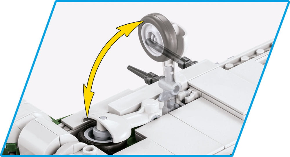 Dodatkowe zalety modelu to obracające się śmigło, otwierana kabina, w której możesz umieścić pilota wraz z maską tlenową oraz chowane podwozie i ruchome lotki. Dołączona do zestawu klockowa podstawka umożliwia atrakcyjne wyeksponowanie modelu. Całość uzupełnia tabliczka zawierająca nazwę zestawu.