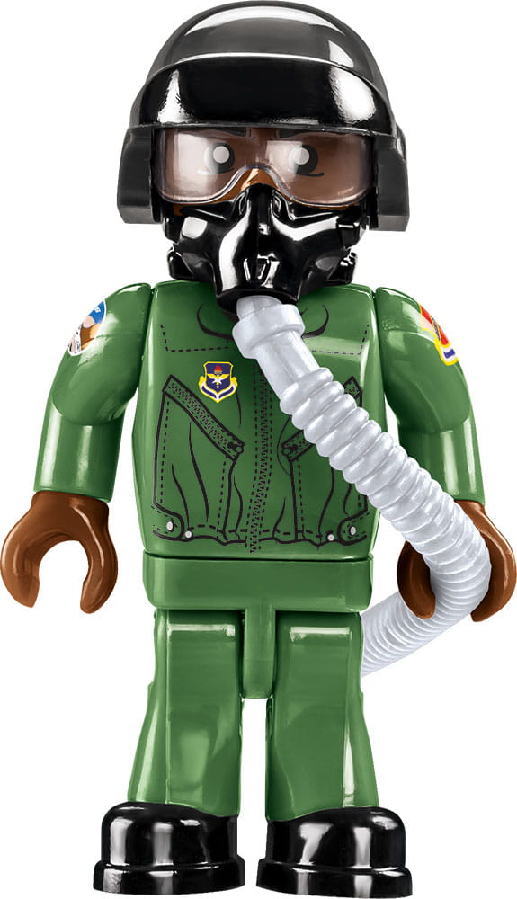 Z 415 najwyższej jakości klocków konstrukcyjnych COBI wybudujesz wydany na licencji megakoncernu zbrojeniowego Lockheed Martin najpopularniejszy na świecie samolot myśliwsko-szturmowy F-16® FIGHTING FALCON®. Zestaw został starannie zaprojektowany w modelarskiej skali 1:35. Klocki zostały pokryte wysokiej jakości nadrukami. Kabina pilota wykonana w nowej technologii dwukolorowego wtrysku to nowa jakość w COBI! Do zestawu dołączona jest figurka pilota wyposażonego w kask i maskę tlenową z wężykiem. Całość zestawu uzupełnia klockowa podstawka ekspozycyjna z tabliczką zawierającą nazwę zestawu!