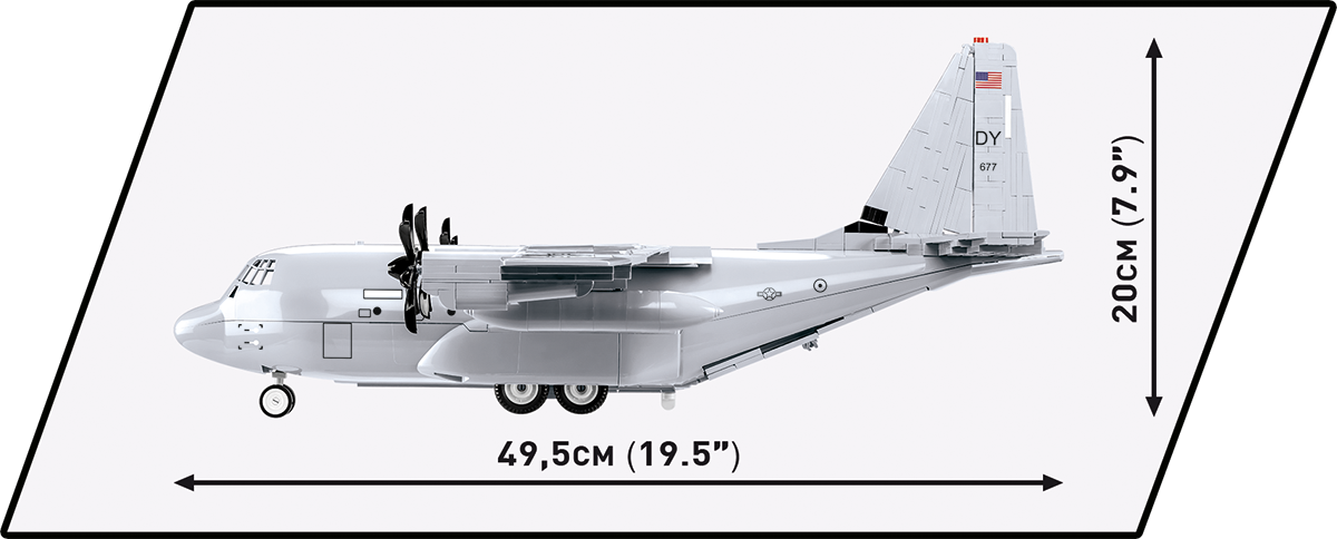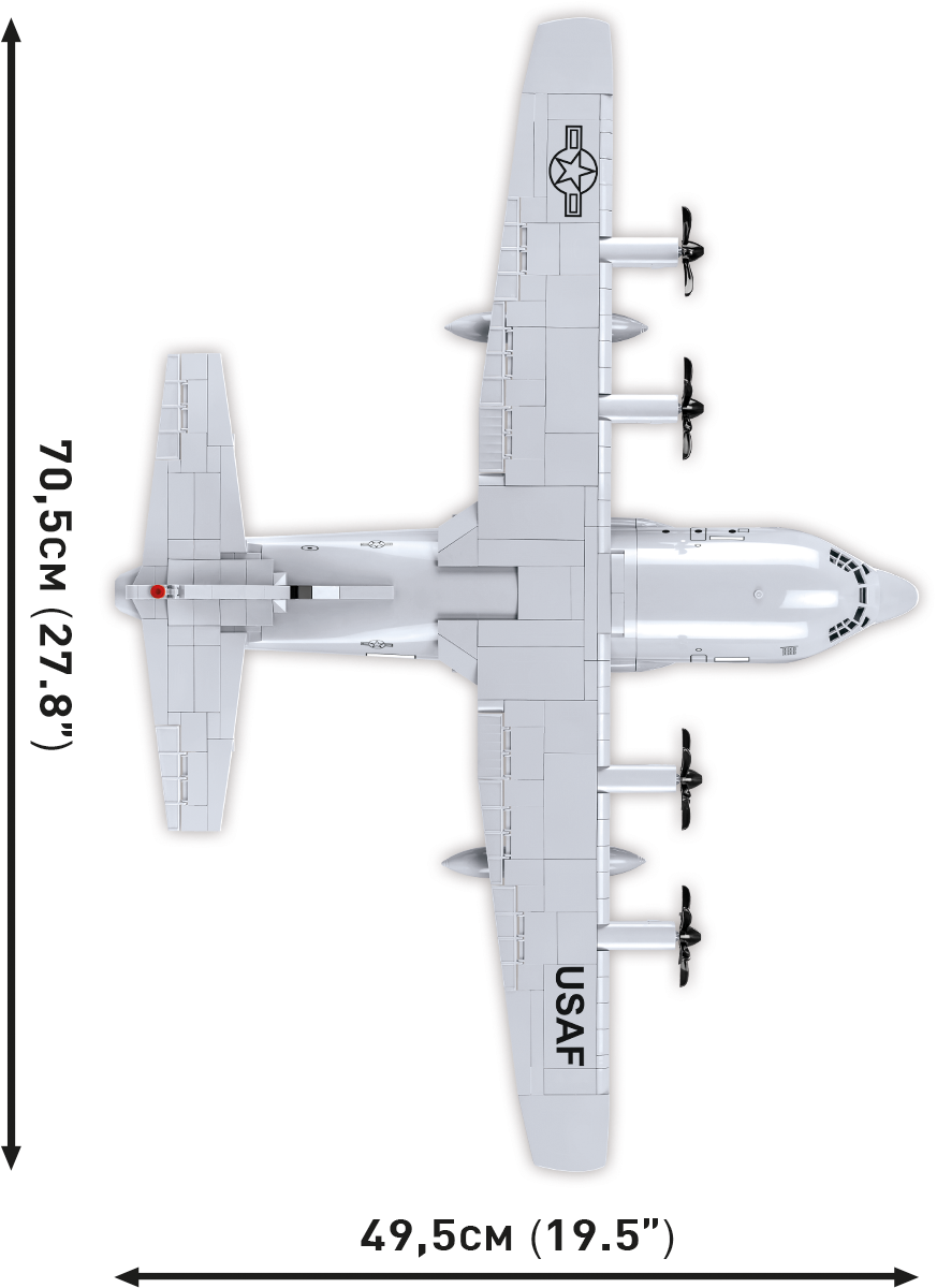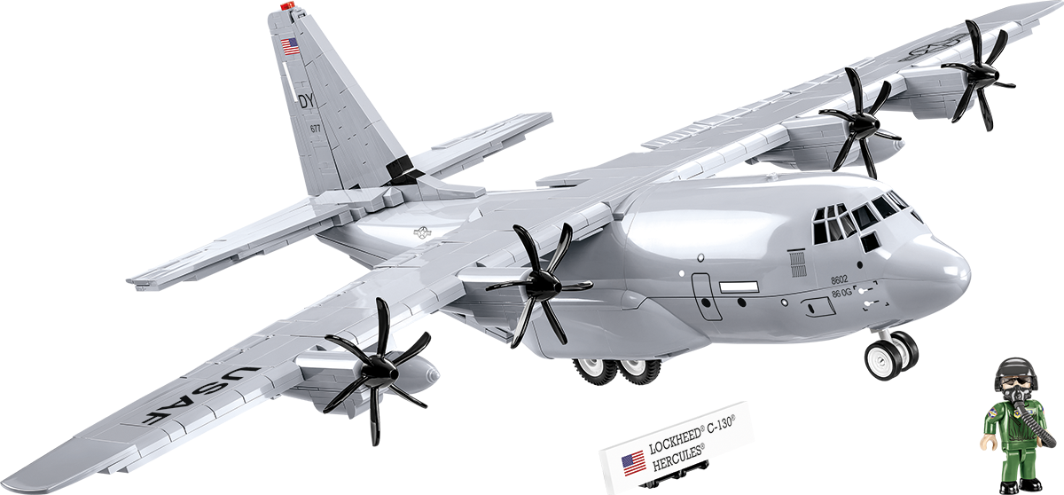 Wydany na licencji Lockheed Martin wojskowy samolot transportowy C-130 Hercules został zaprojektowany w skali 1:61 przy wykorzystaniu 602 elementów i ma aż 70,5 cm rozpiętości skrzydeł! Model oferuje wiele ruchomych elementów takich jak obracające się śmigła, ruchome lotki skrzydeł, otwierana klapa czy koła z gumowymi oponami. Zapewniony został dostęp do kabiny pilotów oraz przestrzeni ładunkowej. Za sprawą trwałych nadruków odwzorowane zostały detale samolotu opracowanego w barwach USA. Do zestawu została dołączona figurka pilota, którą można umieścić w kokpicie. W komplecie znajduje się tabliczka z nazwą modelu. Zestaw uzupełnia kolekcję statków powietrznych wydawanych w ramach kolekcji Armed Forces przeznaczonej dla pasjonatów historii, techniki wojskowej oraz entuzjastów najwyższej jakości modelarstwa klockowego!