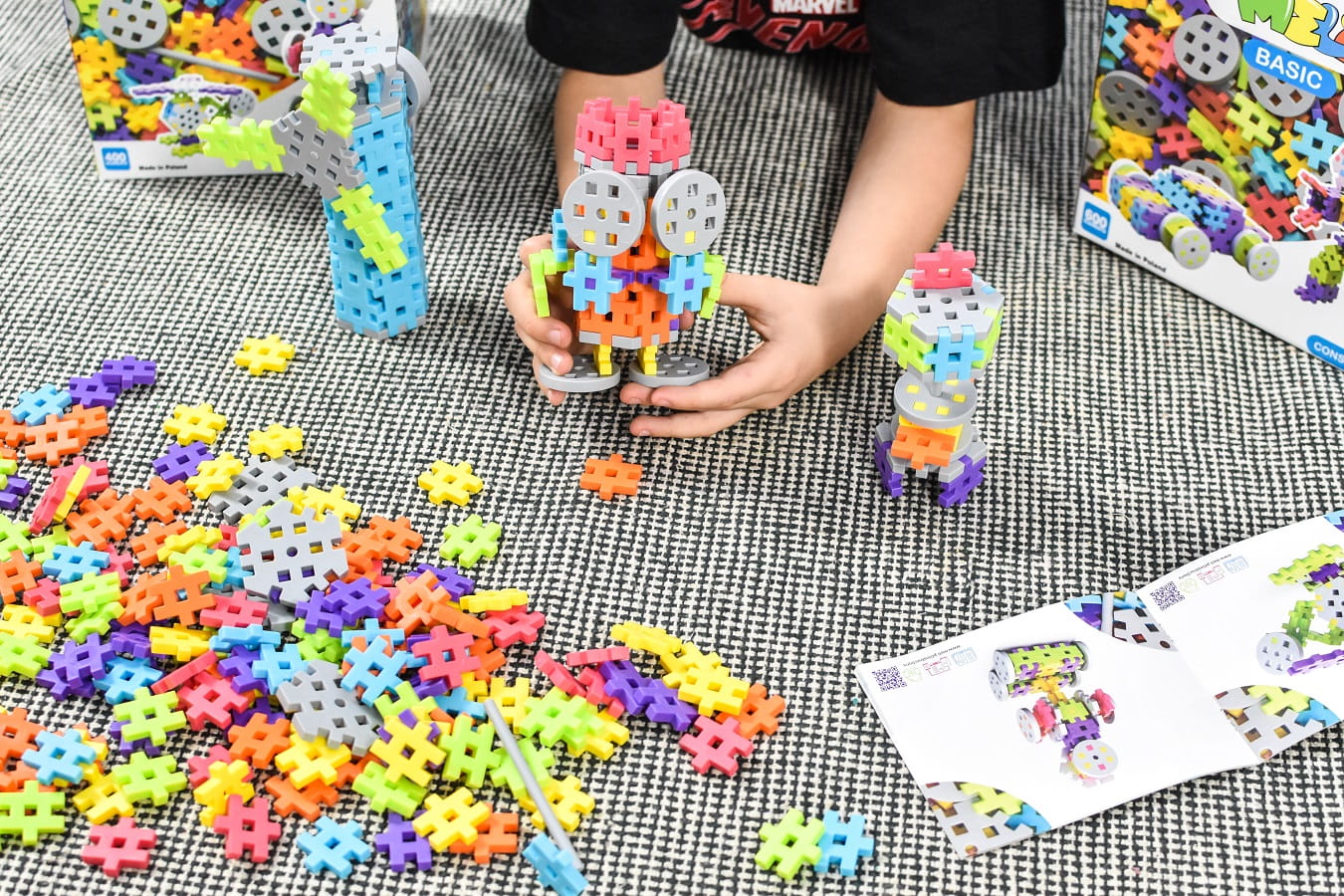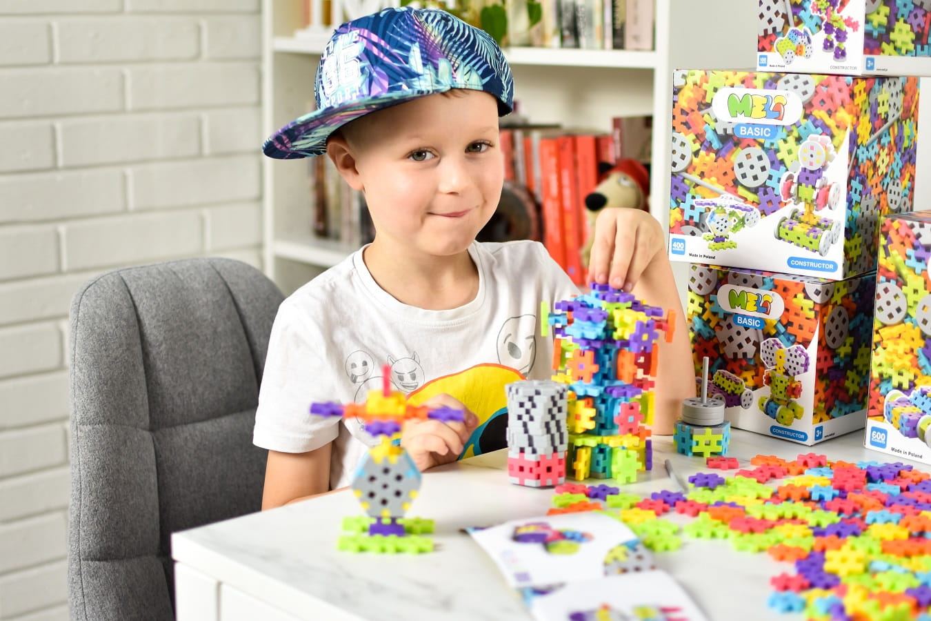 Odpowiednio dobrane do wieku i rozwoju dziecka zabawki, nie tylko sprawiają radość, ale również gwarantują jego intelektualny rozwój. Zestaw edukacyjnych klocków MELI CONSTRUCTOR 400 to aż 370 podstawowych, płaskich elementów do budowania, uzupełnionych o 30 elementów do zadań specjalnych. Koła, osie i sześciokąty pomogą w zmaterializowaniu modeli aut, robotów czy np. śmigłowca! Szukasz zestawu dla rodzeństwa? Harmonijny dobór kolorów zyska akceptację każdego dziecka. Nie zastanawiaj się dłużej – taki prezent to zapewni dziecku radość tworzenia na długie godziny!