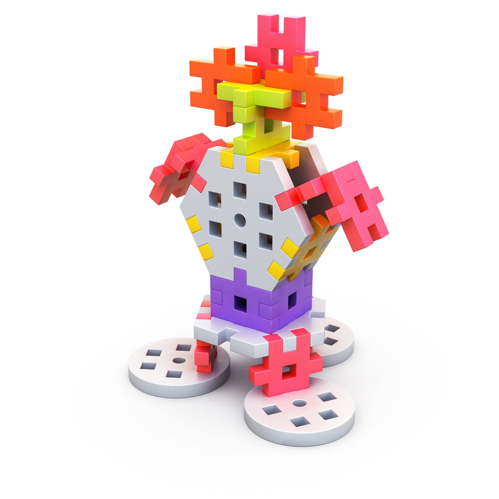 Klasyczne części wzbogaciliśmy elementami do tworzenia prawdziwych egzemplarzy przestrzennych. Koła, osie i wieloboki umożliwiają nie tylko tworzenie modeli trójwymiarowych, z ich pomocą możecie zbudować miniaturowy samochód, samolot, a nawet rakietę! Poręczne opakowanie pozwala na zabranie klocków w każdą podróż, nawet jeśli wybieracie się tylko w odwiedziny do dziadków.
