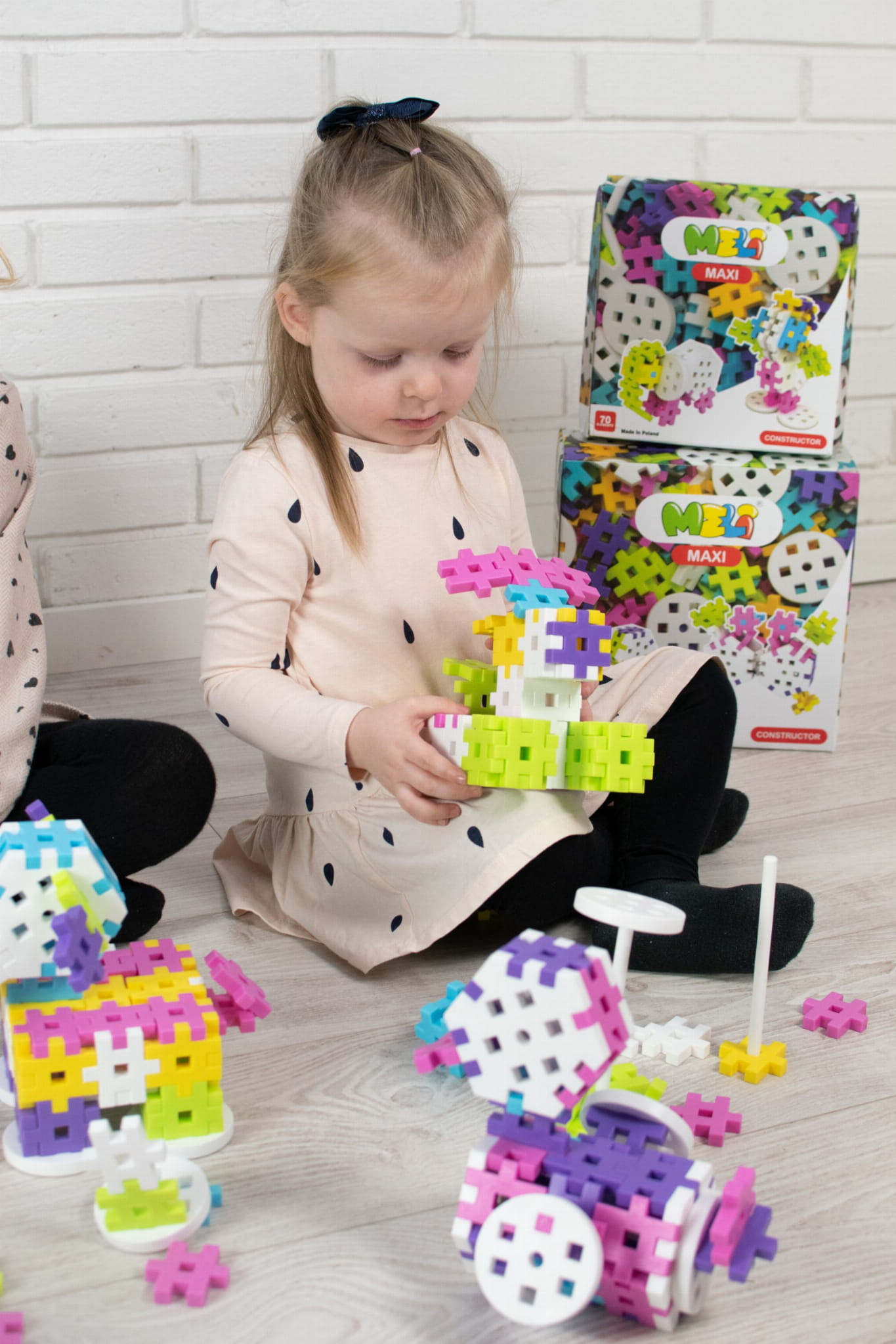 Wspieranie rozwoju psychomotorycznego dziecka to dla Ciebie priorytet? Już roczne dzieci mogą rozpocząć naukę poprzez zabawę z zestawem klocków CONSTRUCTOR MAXI PINK 220. Duża ilość elementów w zestawie może zachęcić do wspólnej pracy rodzeństwo lub grupkę zaprzyjaźnionych dzieci. Zwłaszcza, że przyciągające wzrok płaskie klocki w pastelowych kolorach wzbogaciliśmy o elementy konstruktorskie, takie jak osie, koła i interesujące sześcioboki, po to by tworzone z nich figurki mogły przybierać trójwymiarowe kształty. A może tak zbudować karetę dla księżniczki? A co powiesz na pięknego jednorożca? Ilość aż 220 elementów w zestawie sprawia, że zabawa nigdy się nie nudzi. Nie wiesz jaki prezent ucieszy Twoje dziecko? Gwarantujemy, że ten zestaw zapewni radość i zabawę na długie godziny!