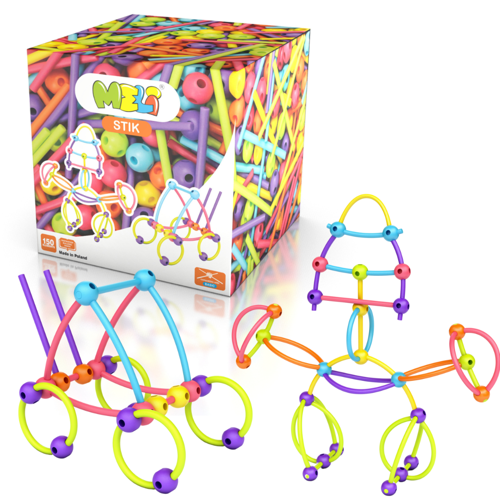 Na dobry początek podaruj swojemu szkrabowi Meli Stik 150 (w którym znajdzie 100 patyczków oraz 50 kulek) i obudź w nim małego konstruktora!
