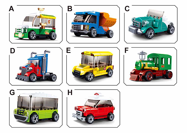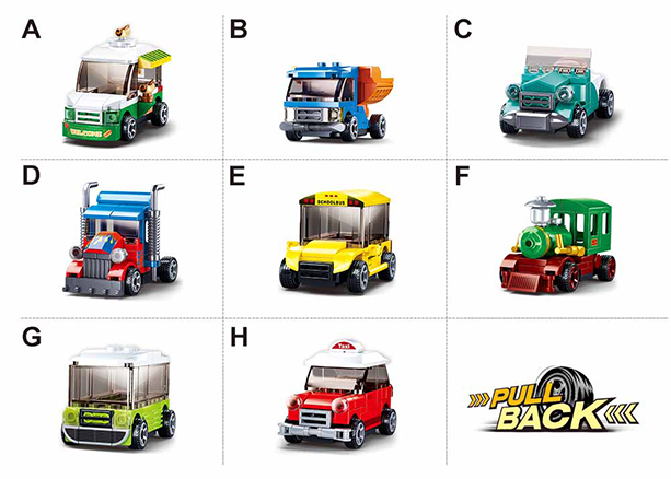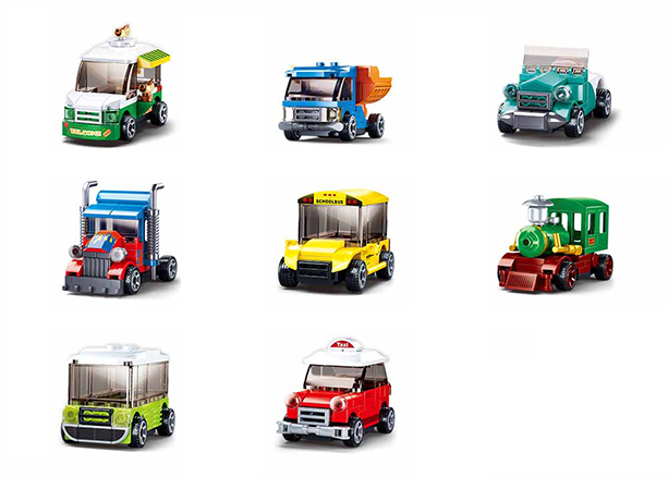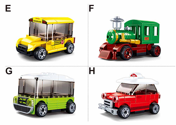 KLOCKI SLUBAN B0933 Zestaw 8 szt. Mini Pojazdy z Napędem Power Bricks