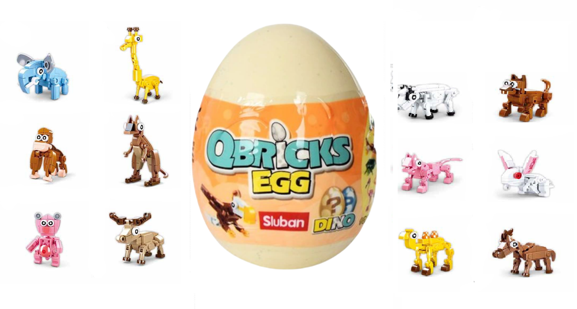 Klocki Jajka Niespodzianki marki SLUBAN to wspaniały zestaw do budowania z serii Q-Bricks Egg - Zwierzęta. Kup już dziś i zbierz kolekcję dwunastu różnych figurek. Atrakcyjność zabawki zwiększa fakt, że sześć zwierzątek może posłużyć do zbudowania jednej dużej figurki!