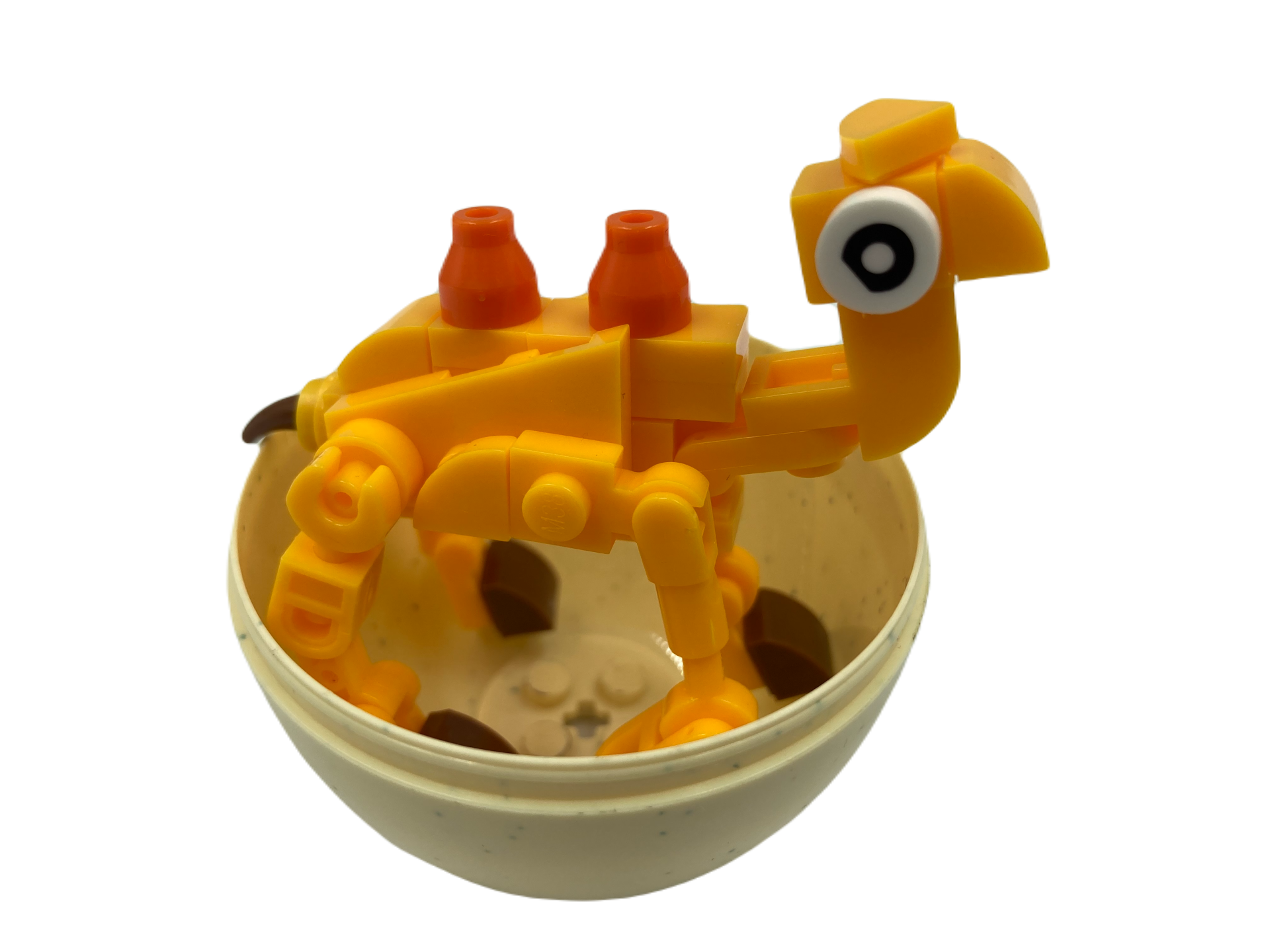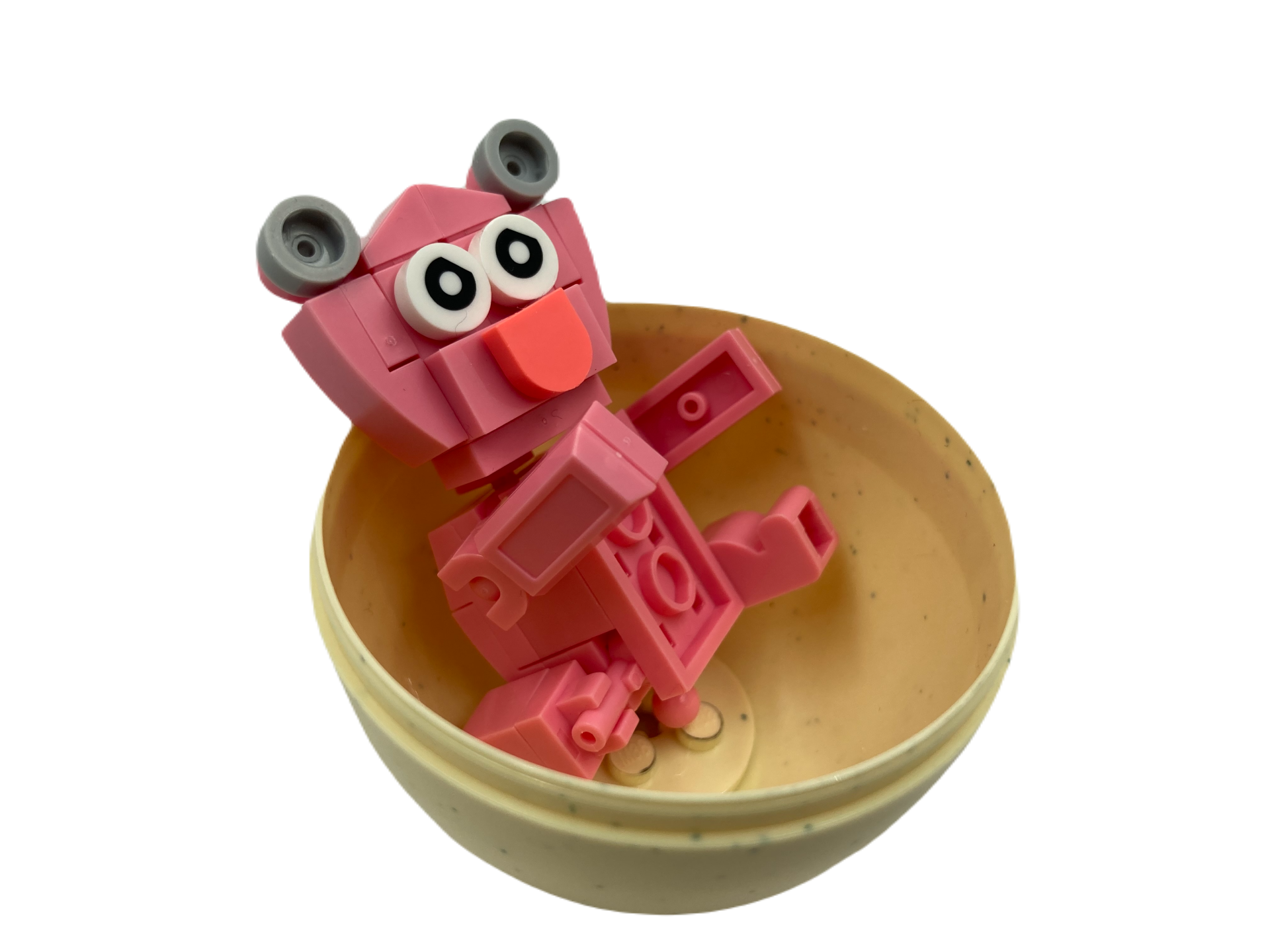 Koniec z rozsypanymi, pogubionymi klockami na podłodze. Zbuduj figurkę z klocków i wyeksponuj ją na podstawce z jajka lub schowaj w całości do środka!