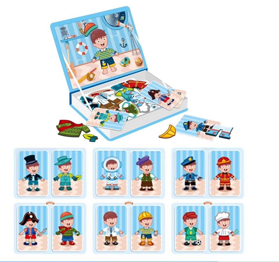 - Typ produktu: książka magnetyczna, układanka edukacyjna, puzzle magnetyczne, przebieranka
