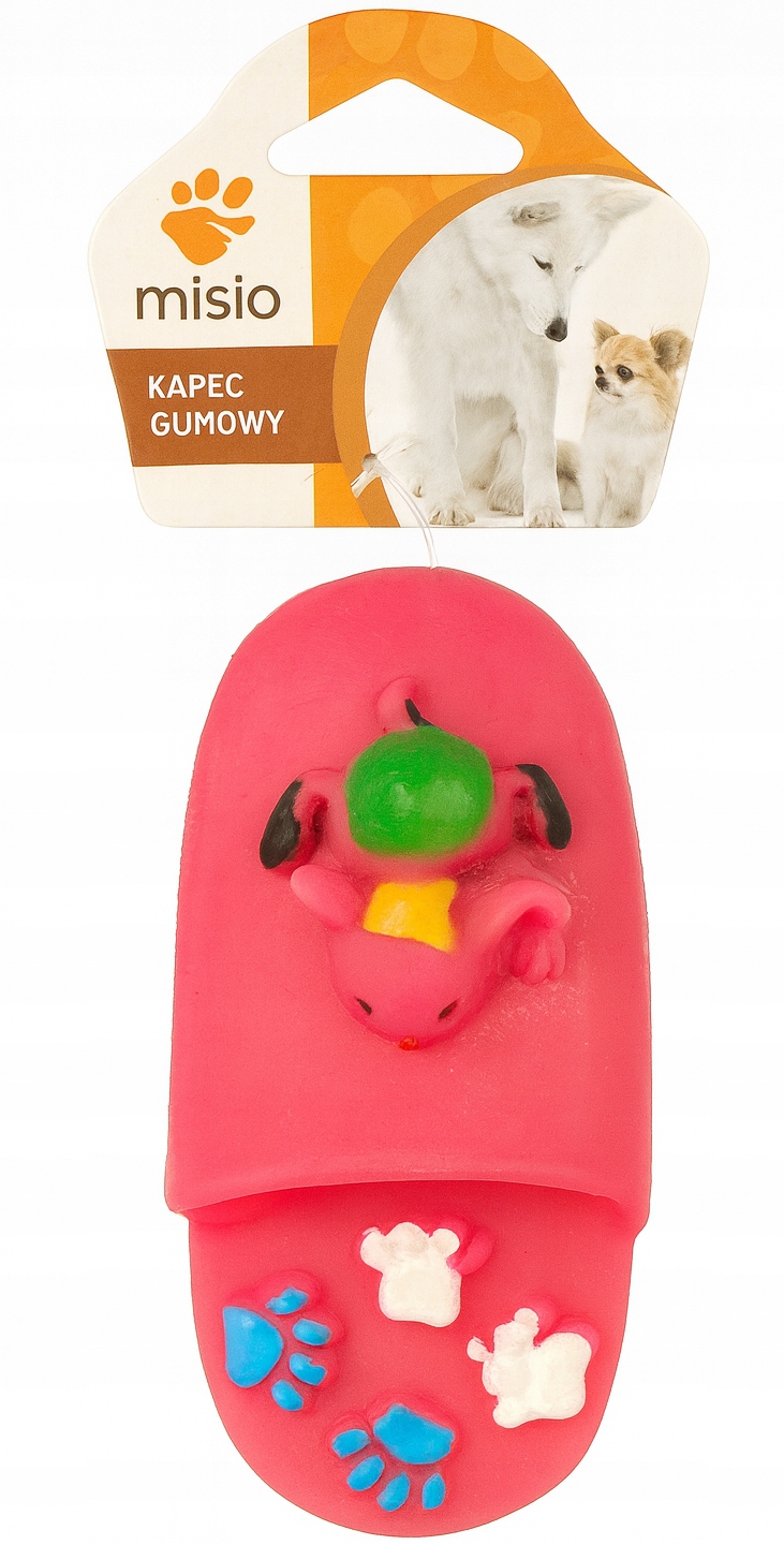Podsumowanie – dlaczego warto kupić: MISIO kapeć gumowy to oryginalna zabawka w kształcie kapcia, która zachęca psa do aktywności i zajmuje go na co dzień. Gumowa forma, wyraźne wypukłe detale i widoczna kolorystyka sprawiają, że to praktyczny wybór dla opiekunów szukających trwałej, łatwej w utrzymaniu zabawki.