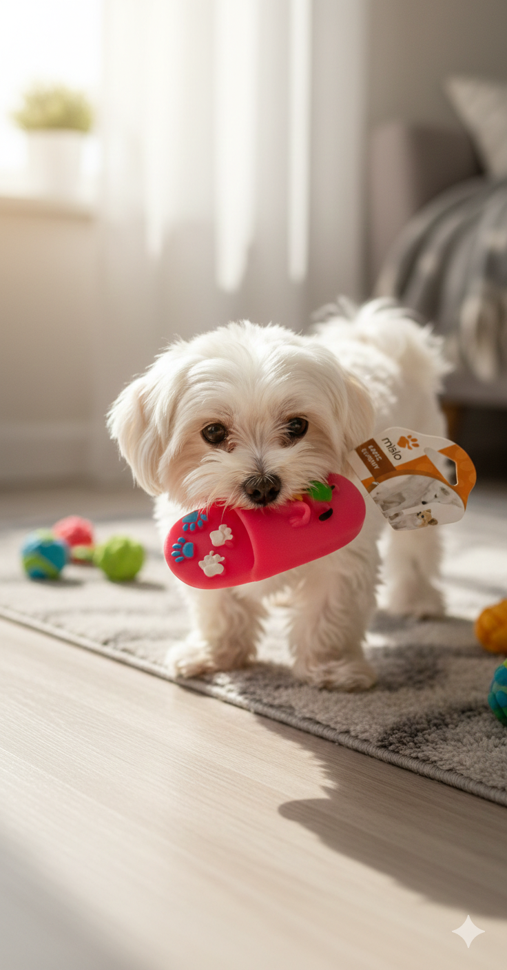 - Zastosowanie: gryzienie, noszenie, zabawa w domu, proste ćwiczenia aportu