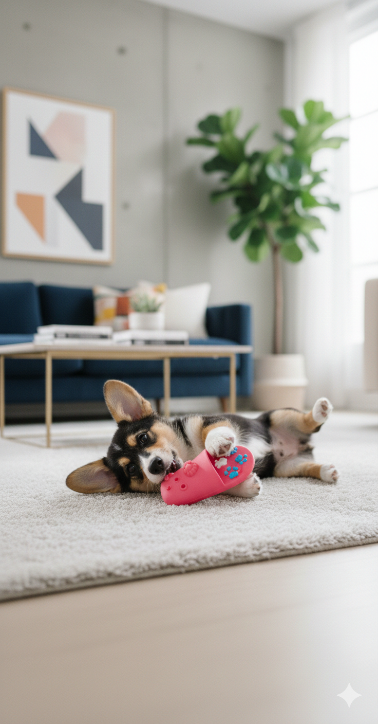 - Gumowa konstrukcja – odpowiednia do codziennego gryzienia i aktywności w domu.