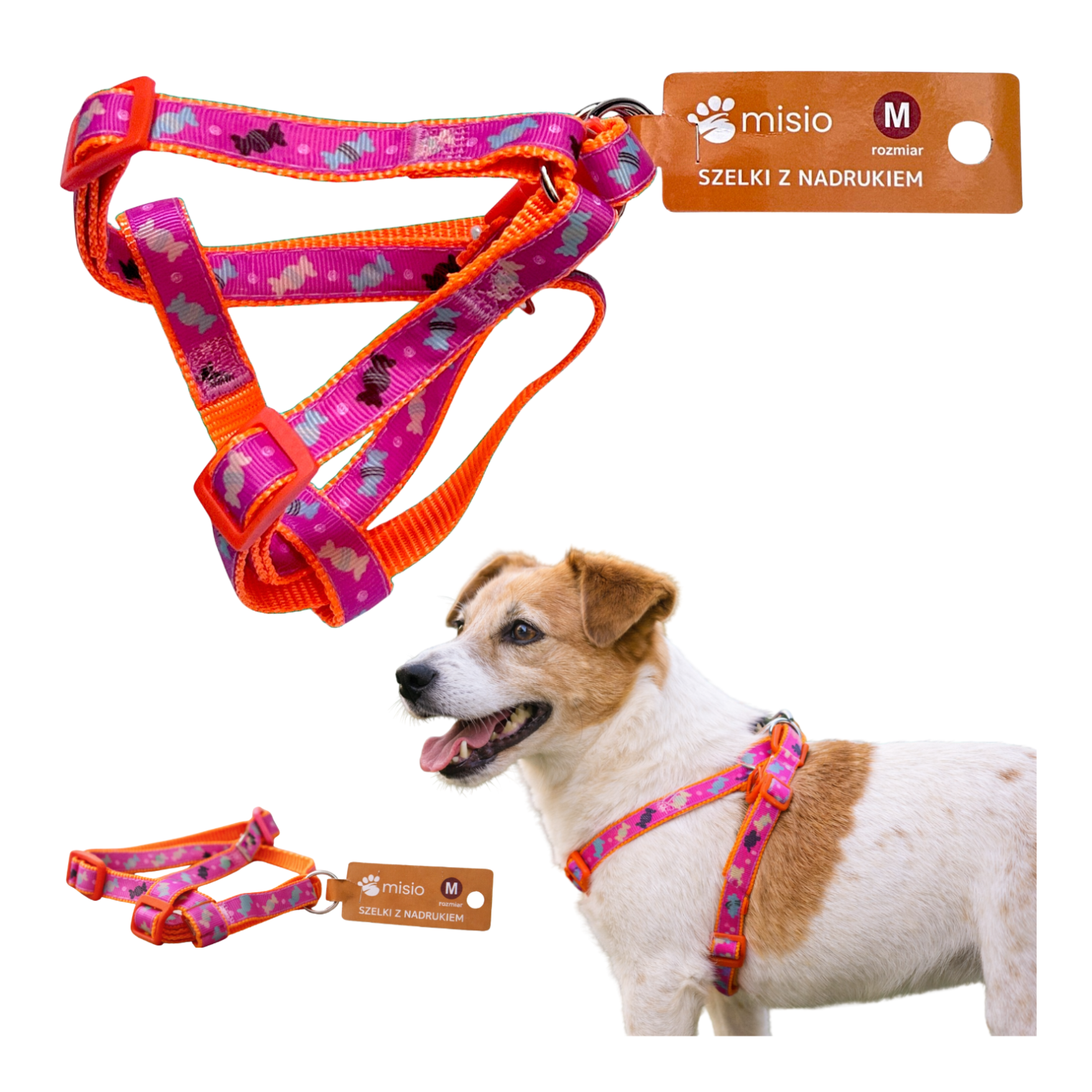 MISIO szelki z nadrukiem rozmiar M pomarańczowe – regulowane szelki typu step-in dla psa