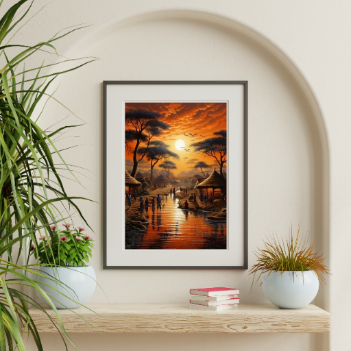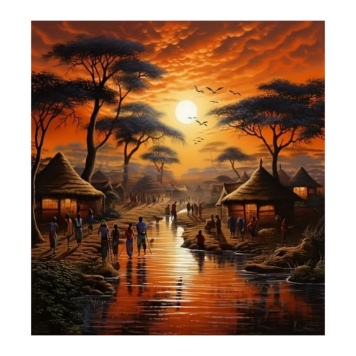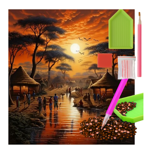 MOZAIKA DIAMENTOWA - AFRYKA ZACHÓD SŁOŃCA W WIOSCE