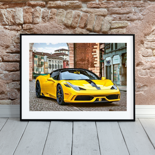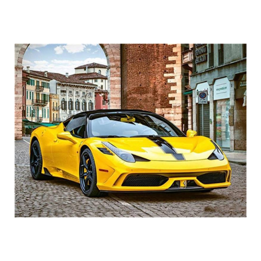 MOZAIKA DIAMENTOWA - AUTO SPORTOWE ŻÓŁTE NA BRUKOWANEJ ULICY
