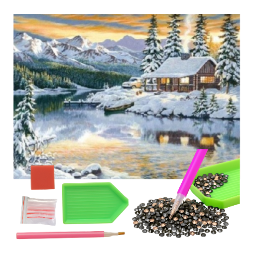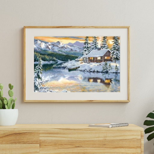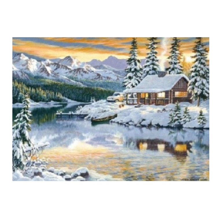 MOZAIKA DIAMENTOWA - CHATA ZAŚNIEŻONA W GÓRACH, ZIMA