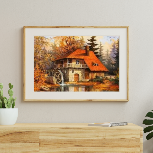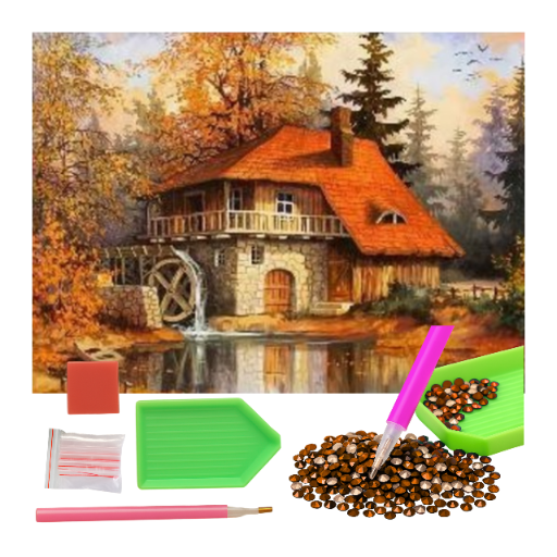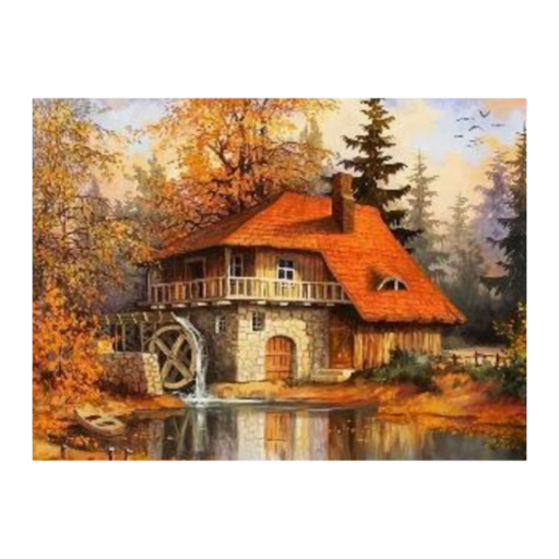 MOZAIKA DIAMENTOWA - DOM Z MŁYNEM JESIENIĄ