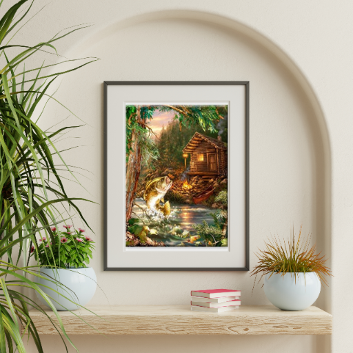 MOZAIKA DIAMENTOWA - DOMEK NAD RZEKĄ , RYBA