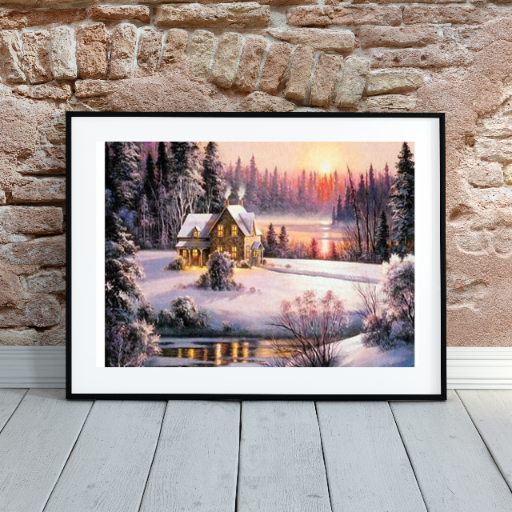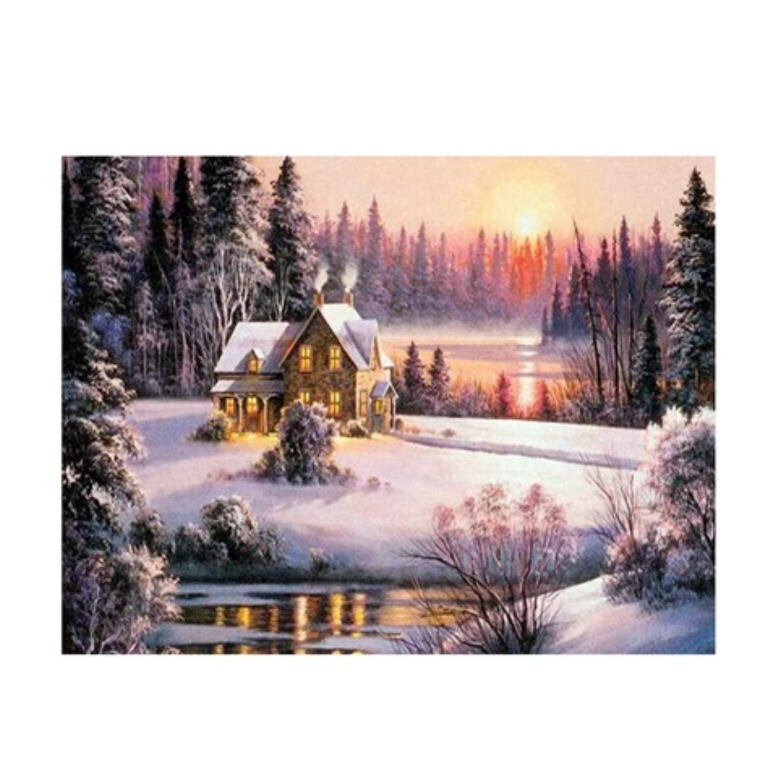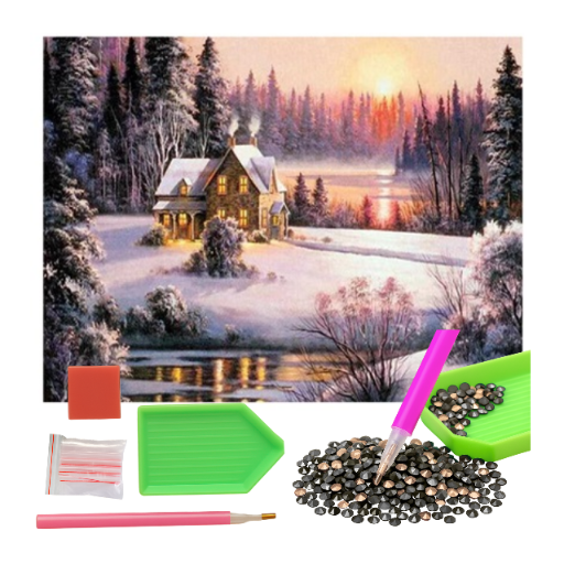 MOZAIKA DIAMENTOWA - DOMEK ZIMĄ W LESIE