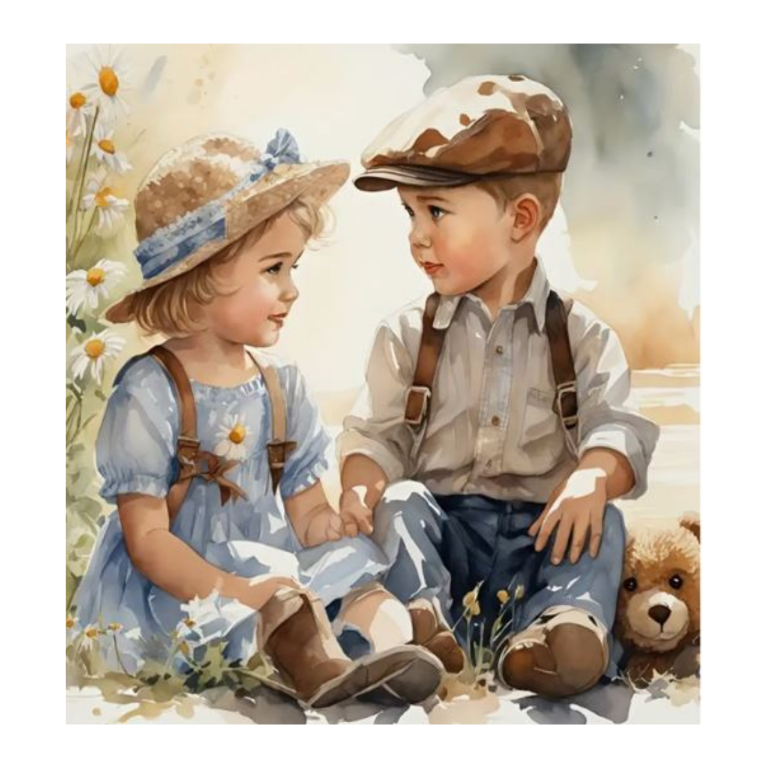 MOZAIKA DIAMENTOWA - DZIEWCZYNA, CHŁOPIEC I MIŚ