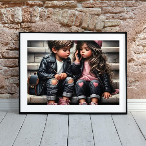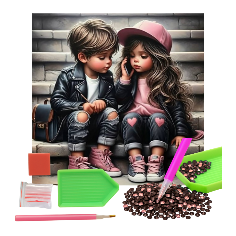MOZAIKA DIAMENTOWA - DZIEWCZYNKA I CHŁOPIEC NA SCHODACH