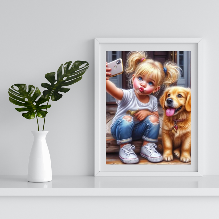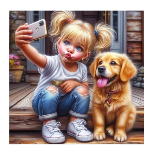 MOZAIKA DIAMENTOWA - DZIEWCZYNKA I PIESEK SELFIE