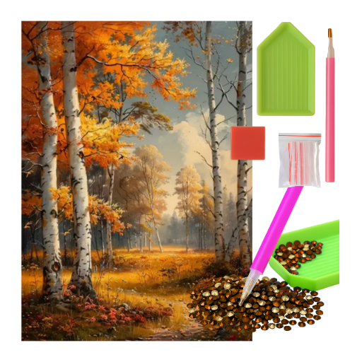 MOZAIKA DIAMENTOWA - JESIEŃ DRÓŻKA MIĘDZY BRZOZAMI