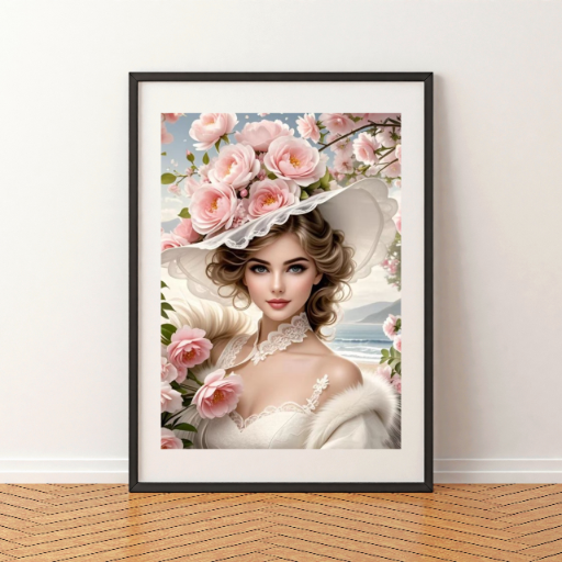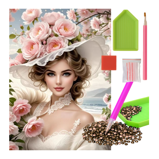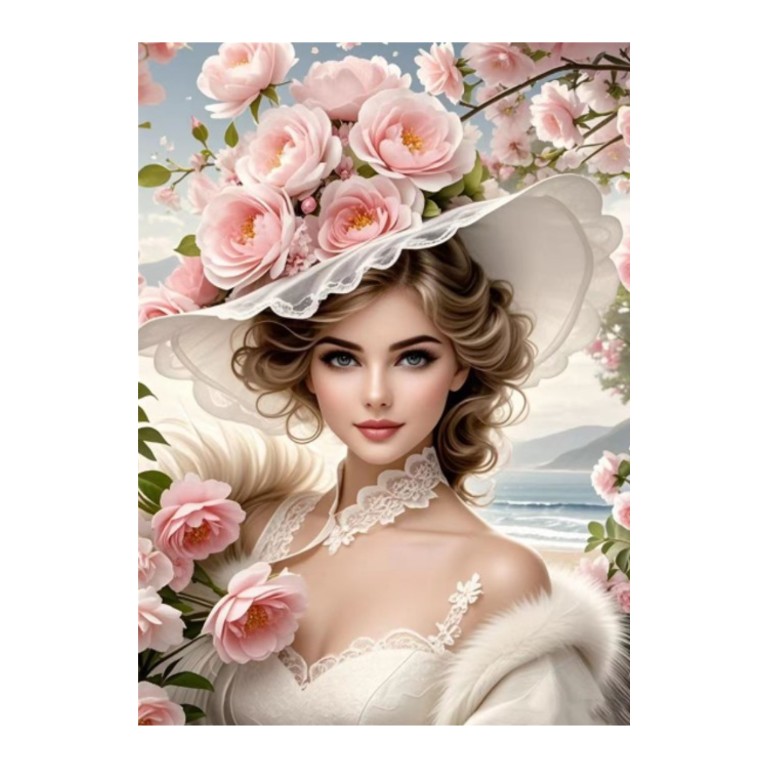 MOZAIKA DIAMENTOWA - KOBIETA DAMA W BIELI I RÓŻE